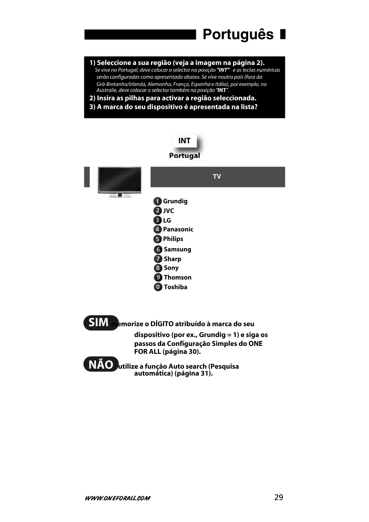 dispositivo (por ex., Grundig = 1) e siga os