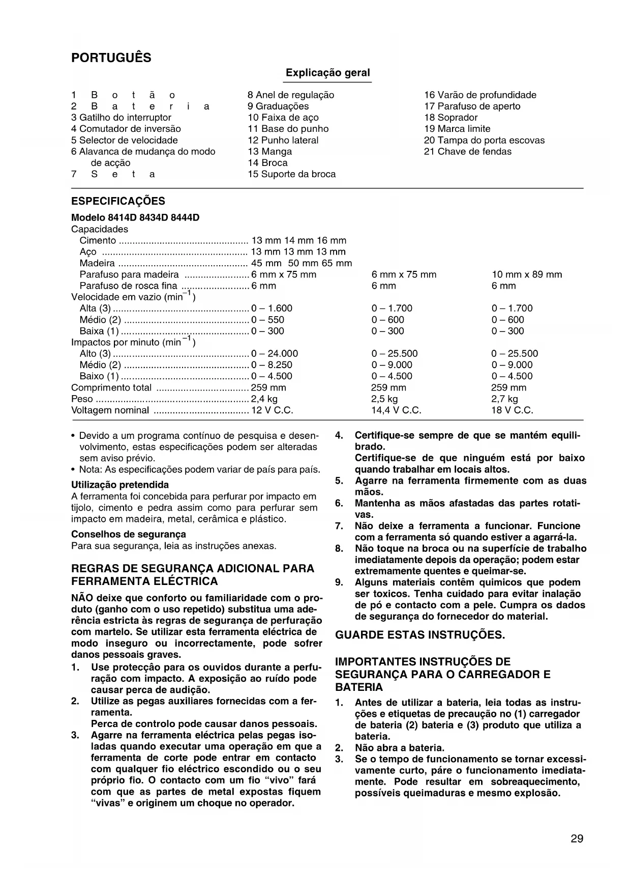 1. Use protecçâo para os ouvidos durante a perfu-