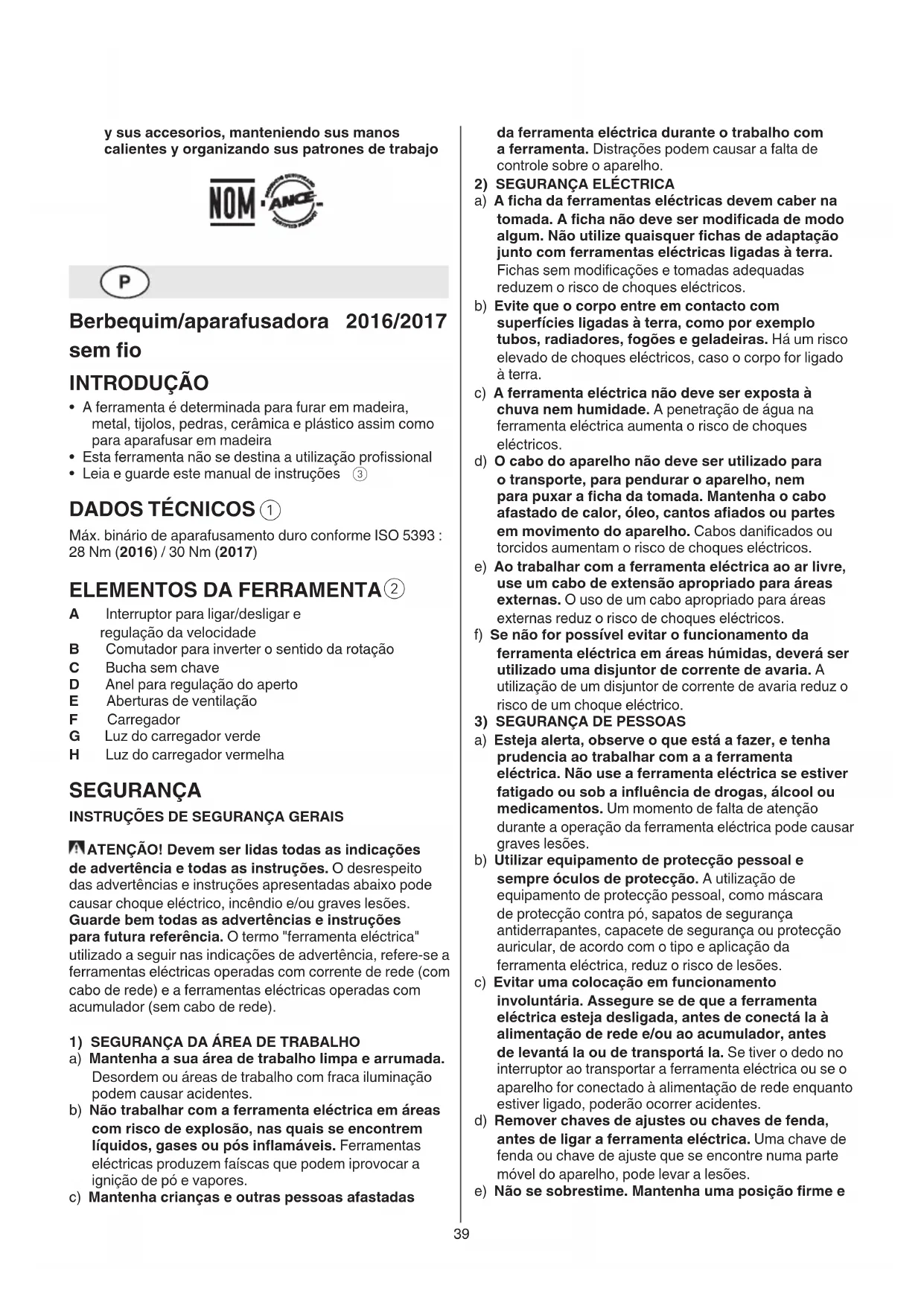 SEGURANÇA INSTRUÇÕES DE SEGURANÇA GERAIS ATENÇÃO! Devem ser lidas todas as indicações