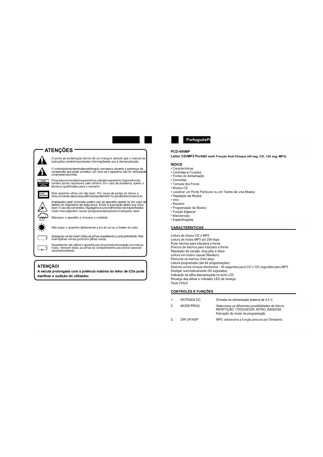 A escuta prolongada com a potência máxima do leitor de CDs pode danificar a audição do utilizador.