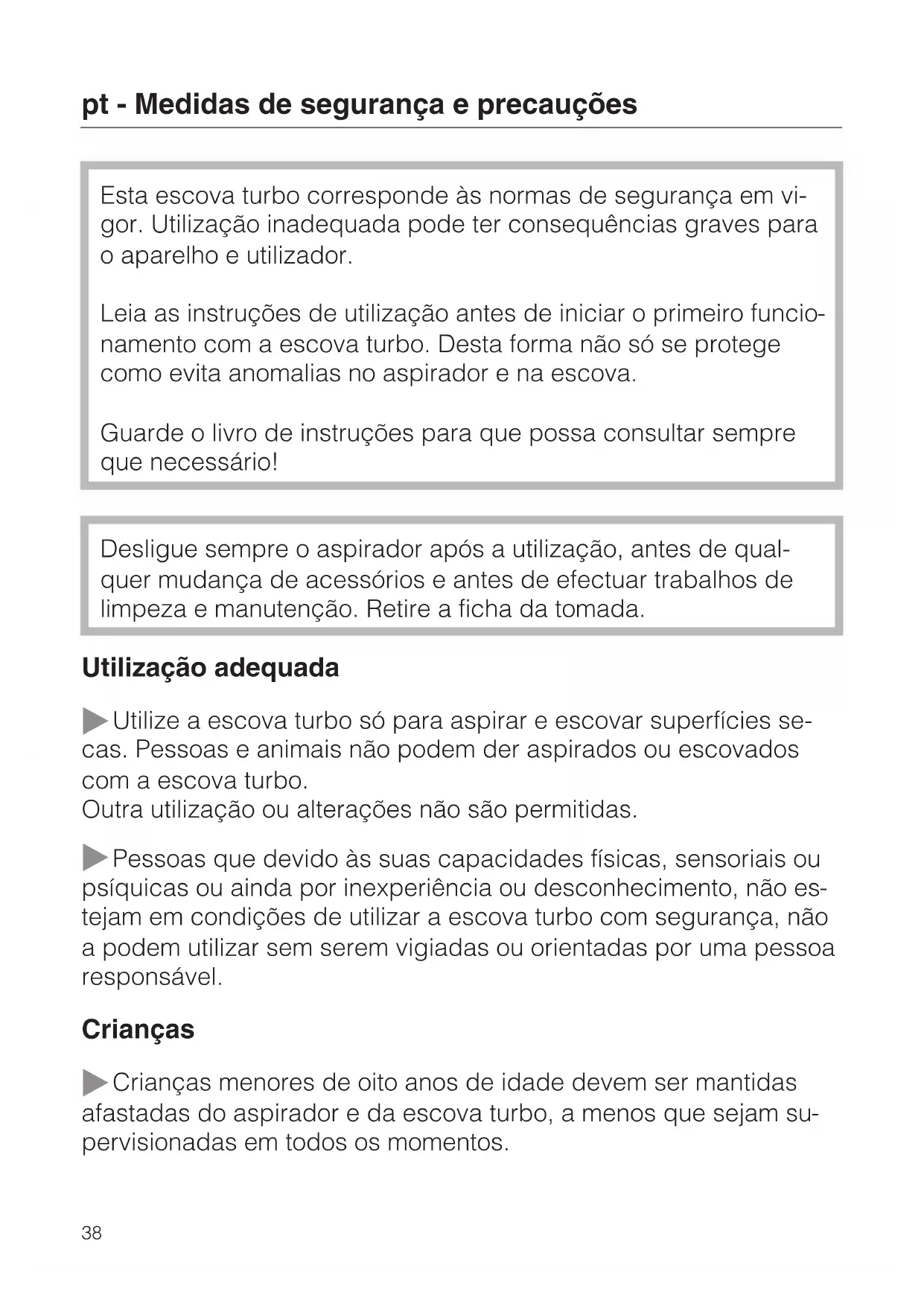 turbo. Não permita que as crianças brinquem com o aspirador e