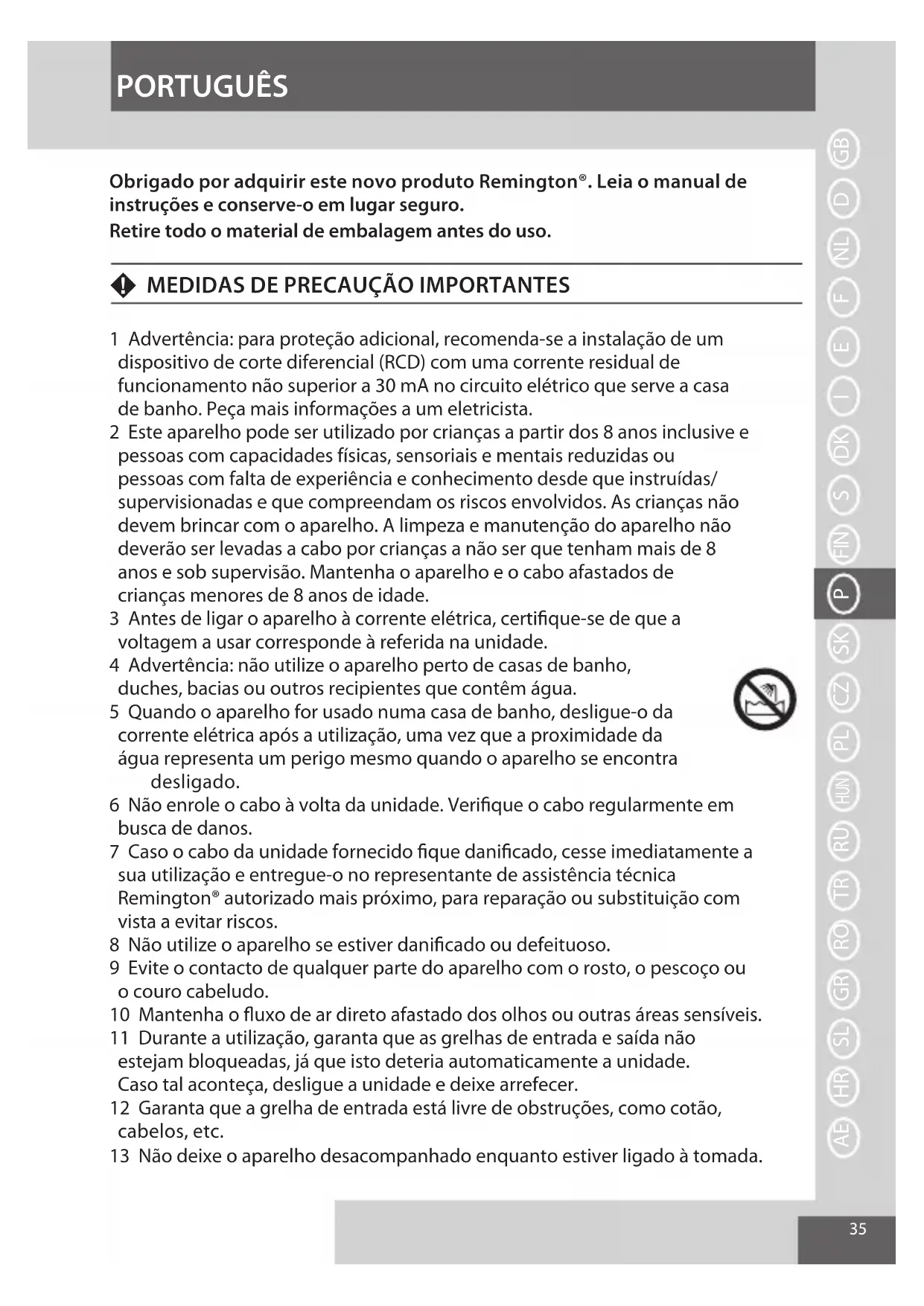Obrigado por adquirir este novo produto Remington®. Leia o manual de
