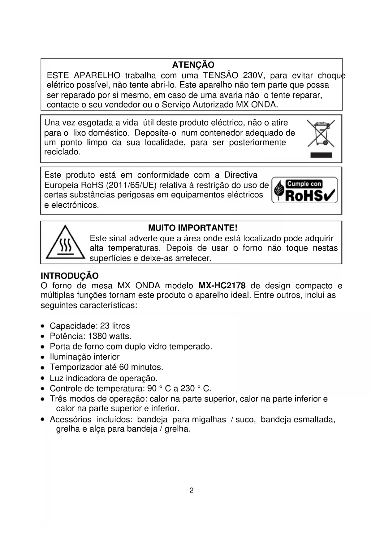 Encontre gratuitamente o manual do aparelho MXHC2178 Mx Onda em formato PDF.