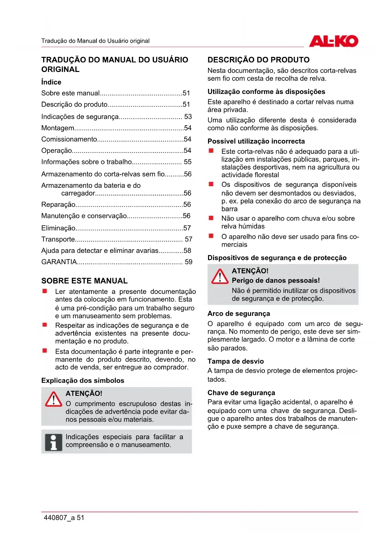 DESCRIÇÃO DO PRODUTO Nesta documentação, são descritos corta-relvas