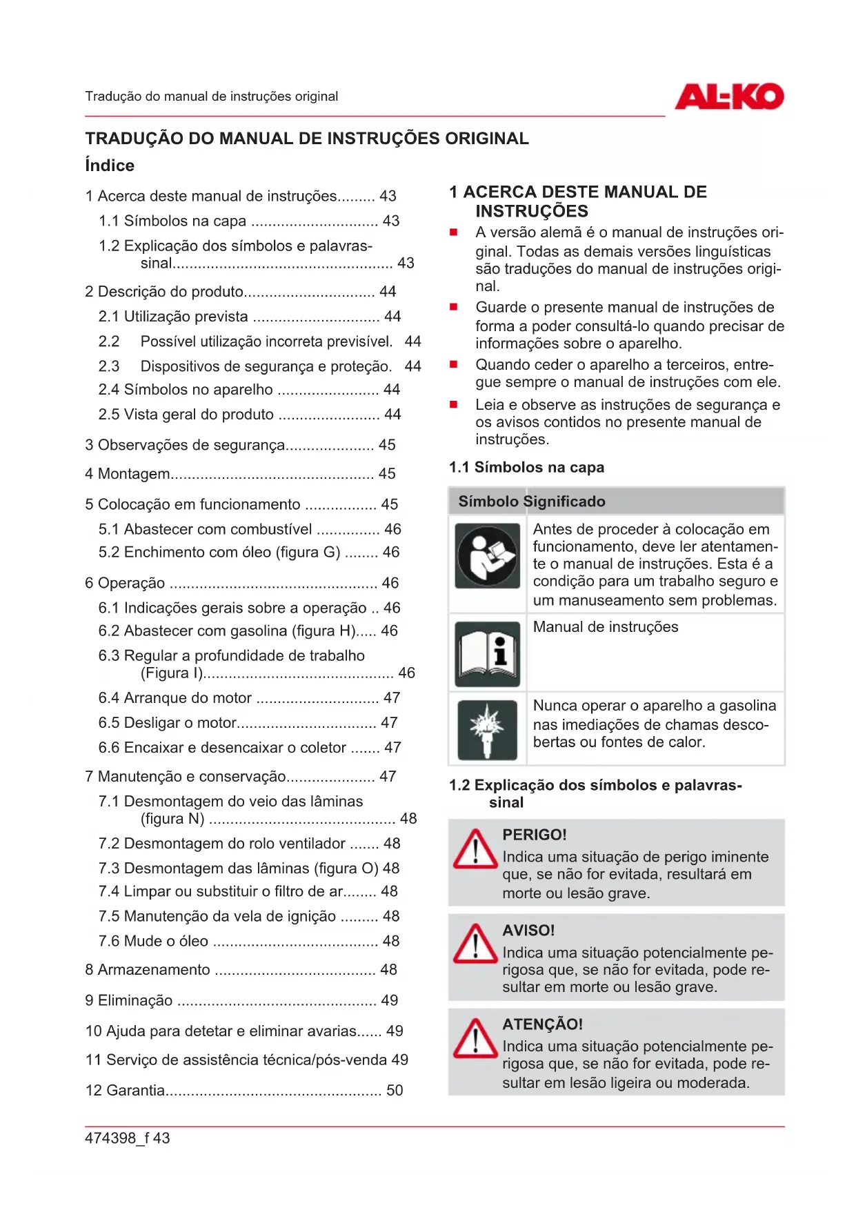 Combi Care 38 P Comfort - Corta-relva AL-KO - Manual de utilização gratuito