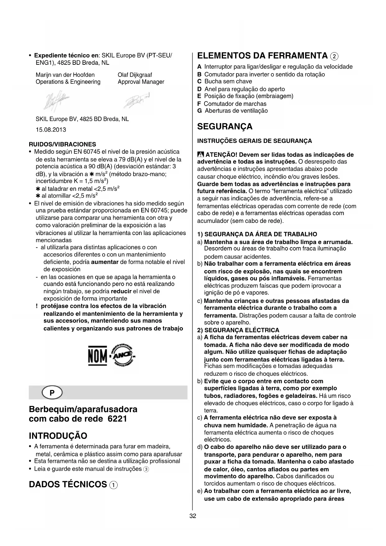• Processo técnico em: SKIL Europe BV (PT-SEU/