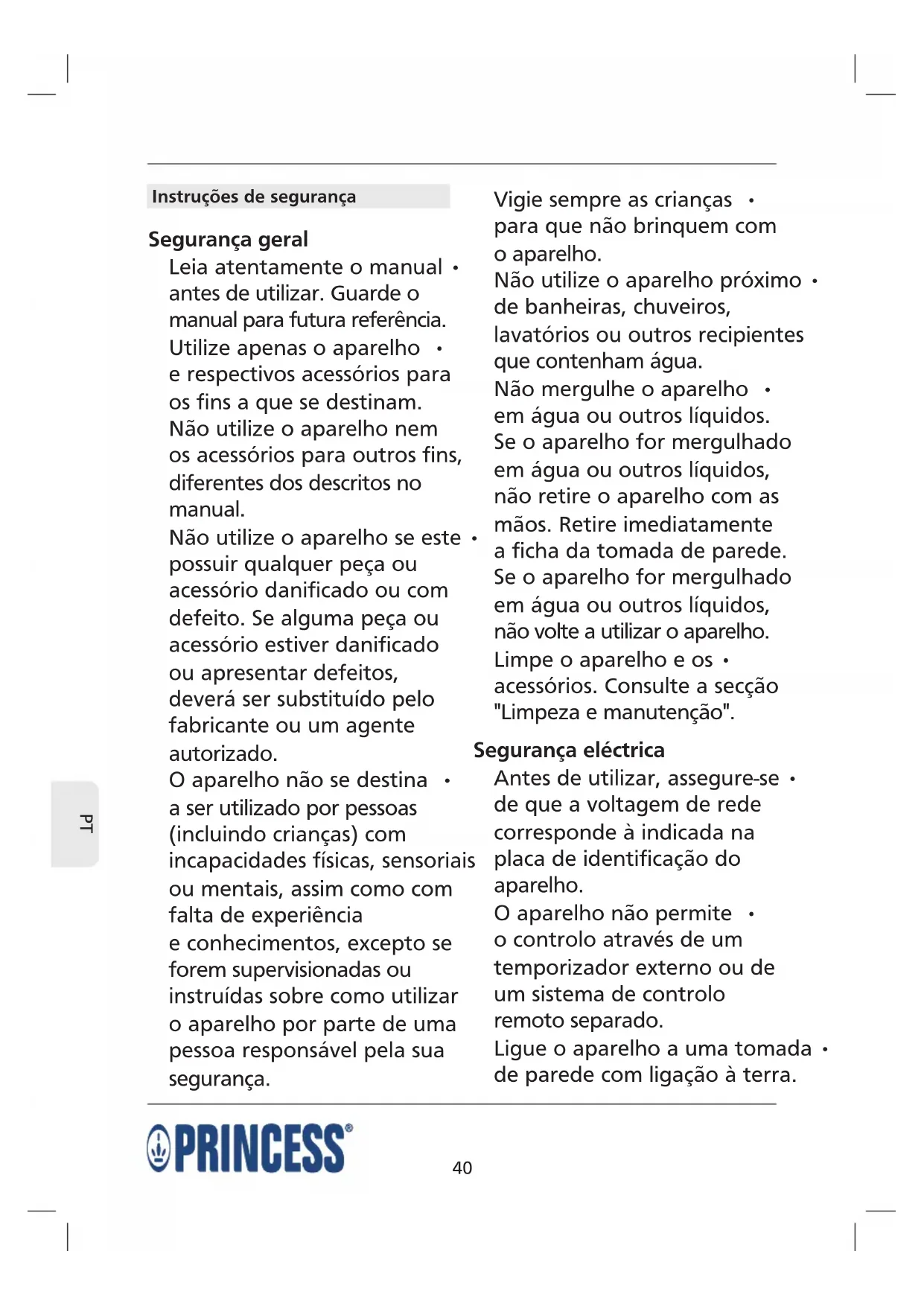 MANUAL DE UTILIZADOR Piano 217100 PRINCESS