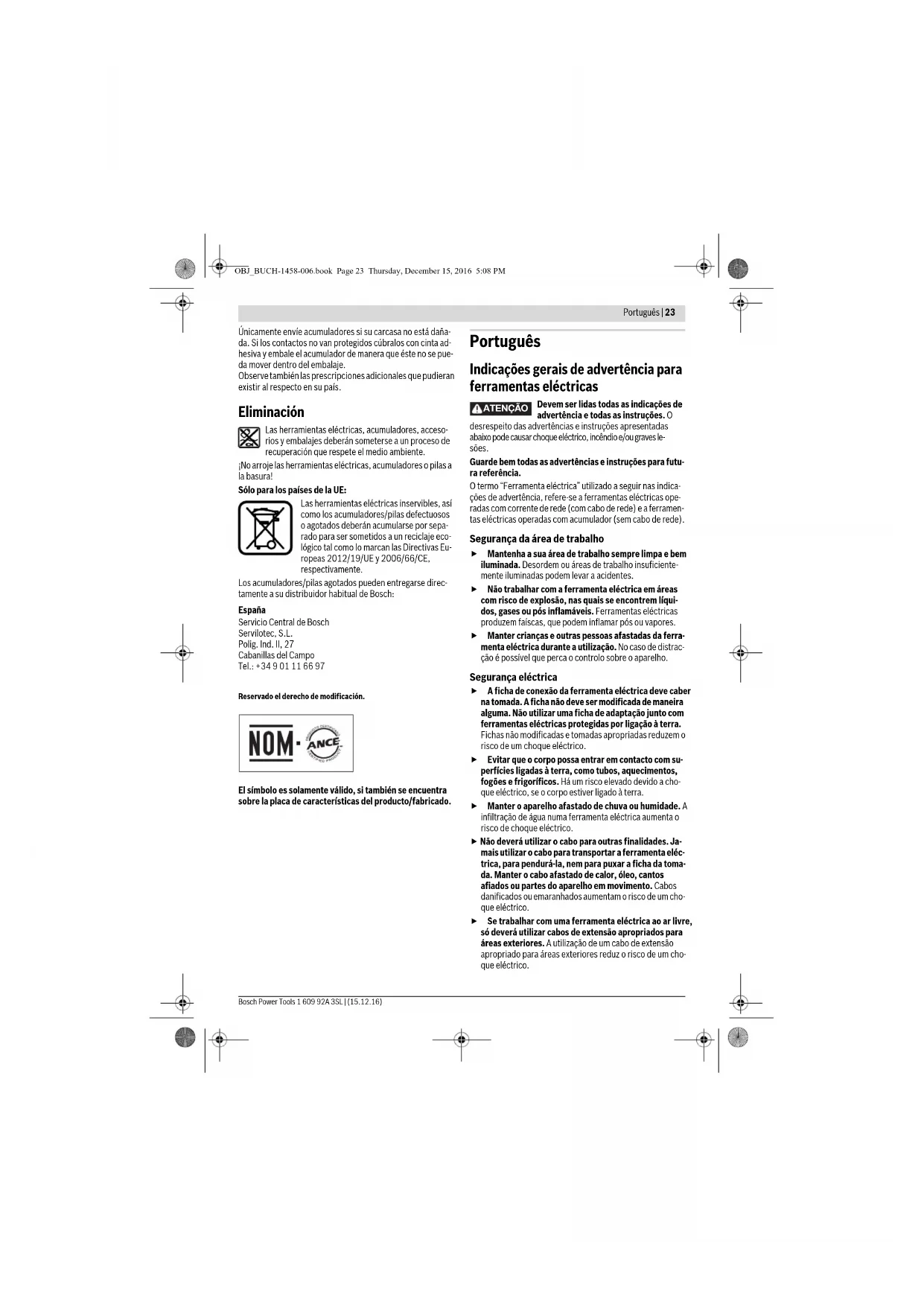 ções de advertência, refere-se a ferramentas eléctricas ope-