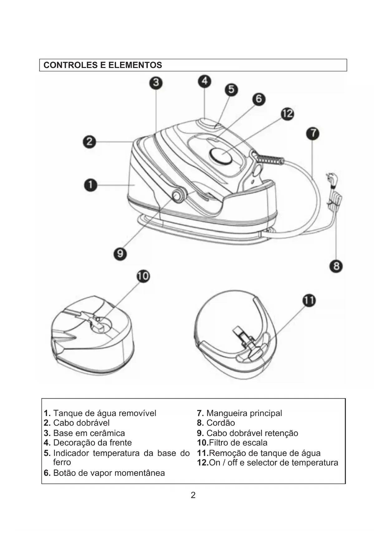 - Este disposicao funciona a temperatas elevadas, o que durante a manipulacao segure o ferro ou a unidade principal com os punhos e isolantes extremo cuidado ao fazer uso de vapor (especially em posicao vertical).