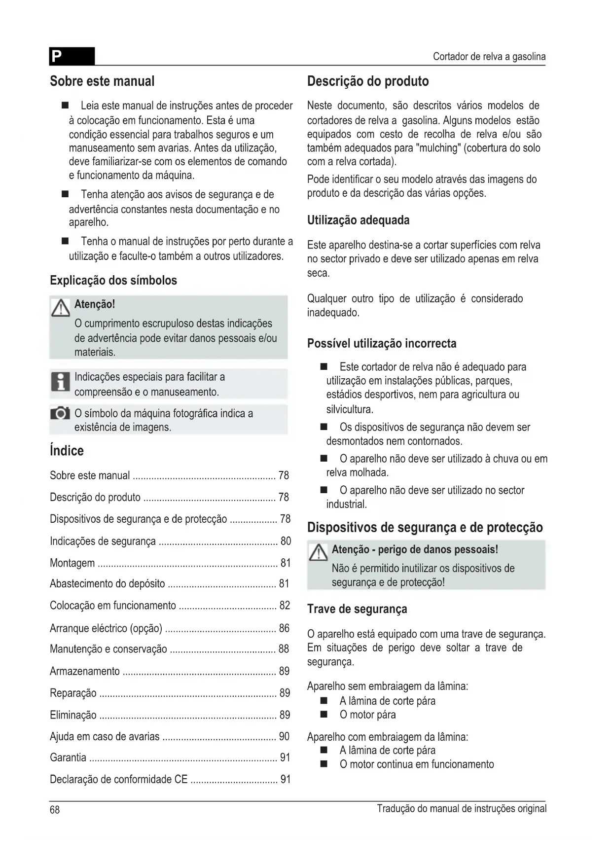 O deector protege contra a projecção de peças.P Tradução do manual de instruções original