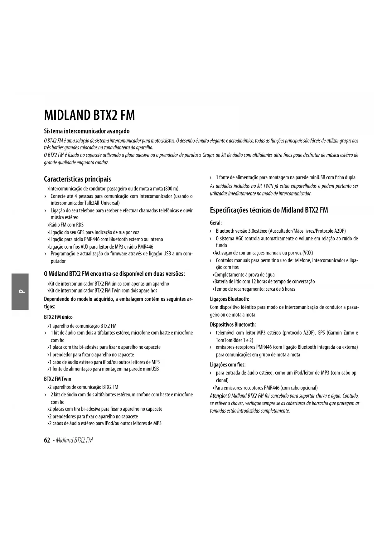 MANUAL DE UTILIZADOR BTX2 FM MIDLAND