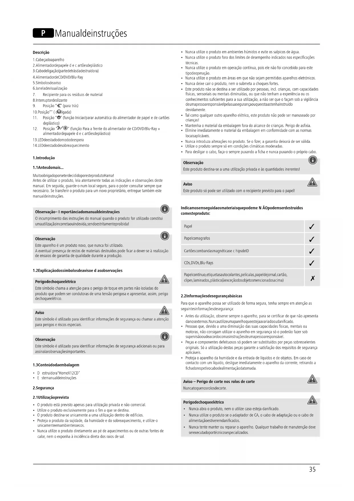 Baixe as instruções para o seu Destructeur de document em formato PDF gratuitamente! Encontre o seu manual X12CD - HAMA e retome o controlo do seu dispositivo eletrónico. Nesta página estão publicados todos os documentos necessários para a utilização do seu dispositivo. X12CD da marca HAMA.