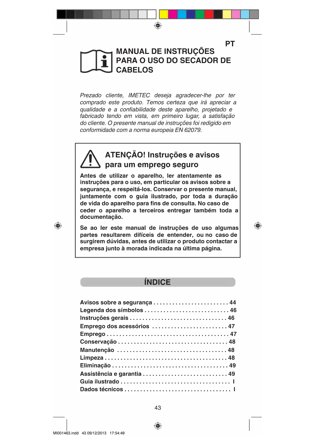 MANUAL DE INSTRUÇÕES PARA O USO DO SECADOR DE CABELOS Prezado cliente, IMETEC deseja agradecer-lhe por ter