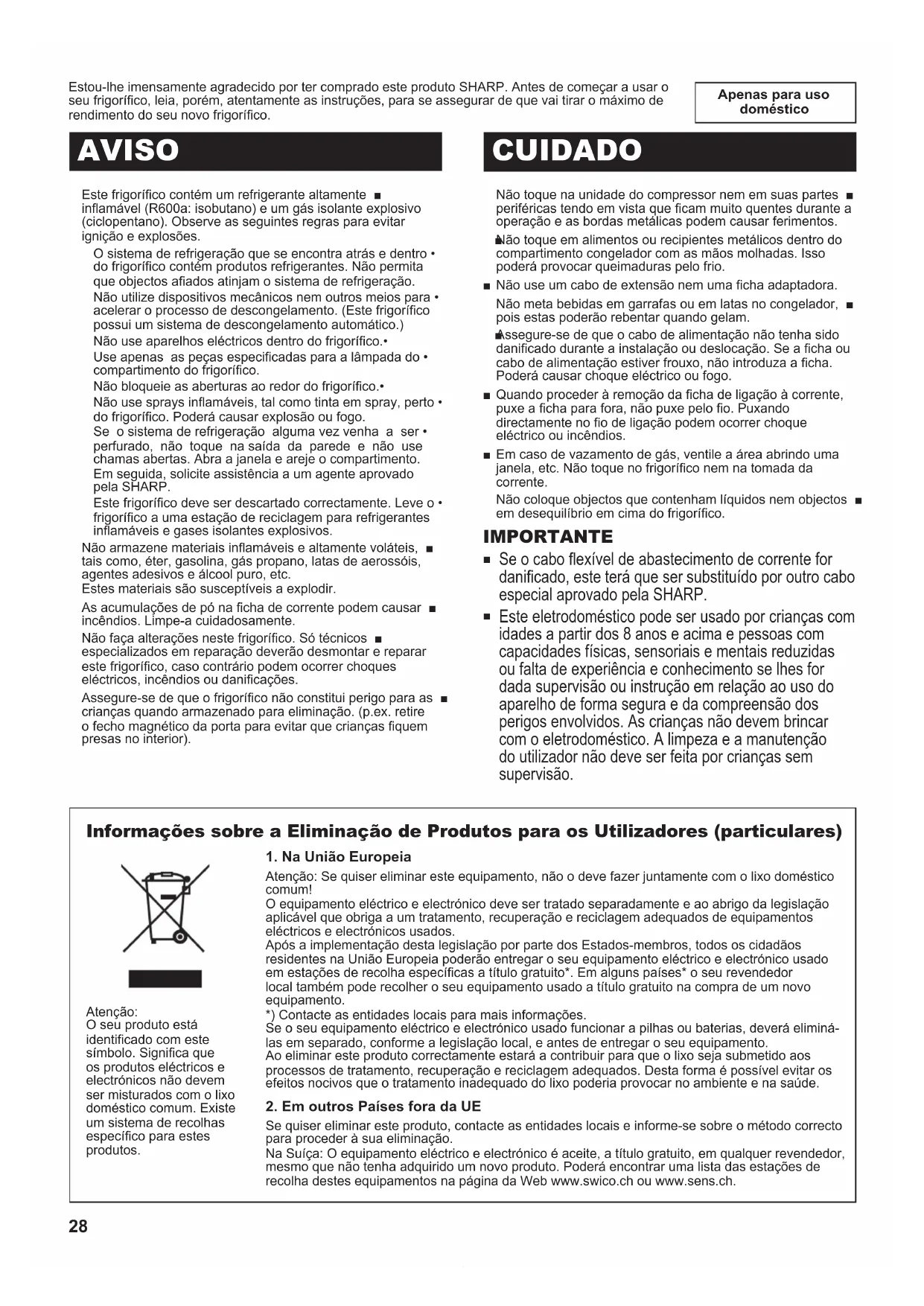 Este frigoríco deve ser descartado correctamente. Leve o •