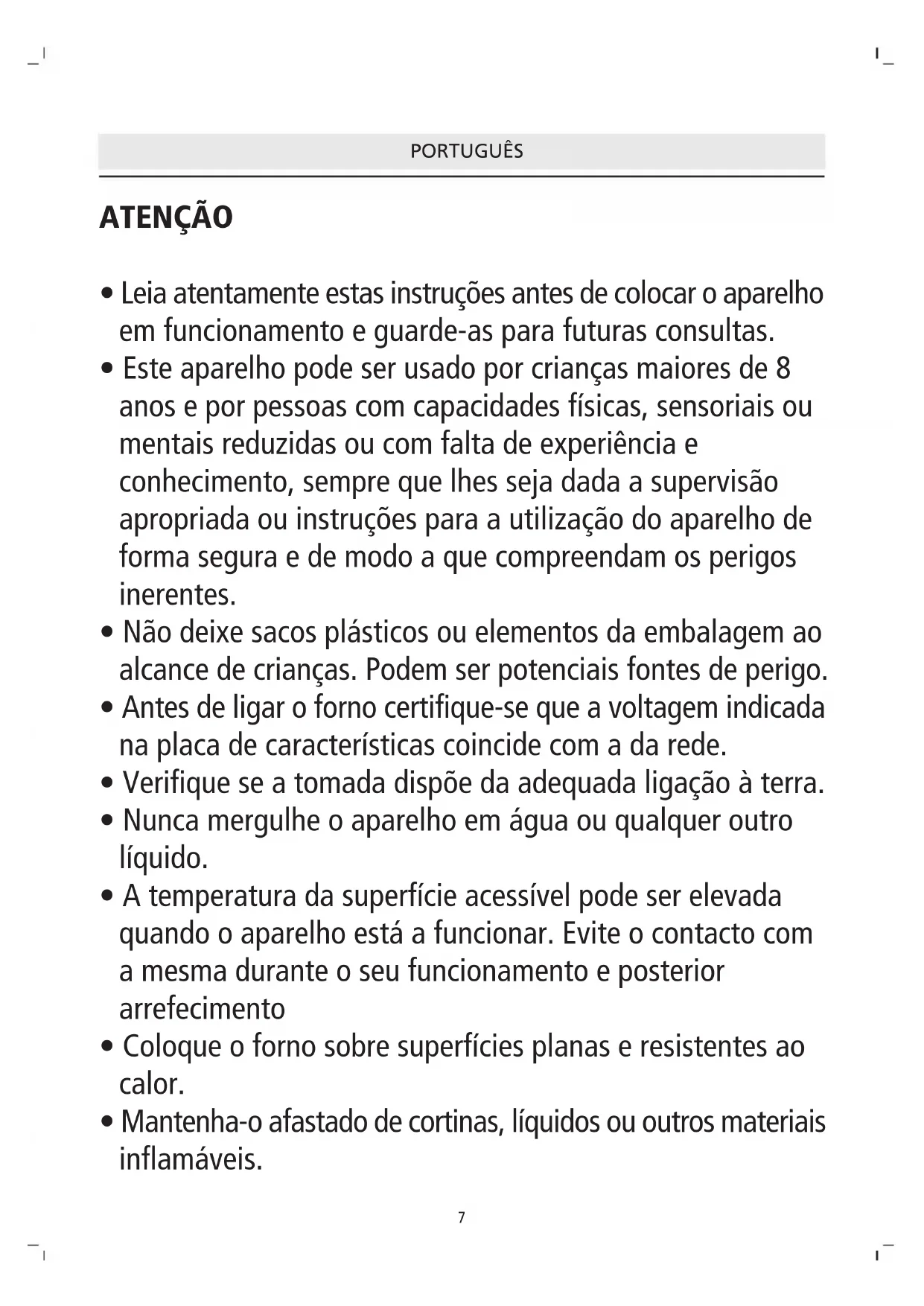 - Este aparelho pode ser usado por crianças maiores de 8 anos e por pessoas com capacidades físicas, sensoriais ou mentais reduzidas ou com falta de experiência e conhecimento, sempre que lhes seja dada a supervisão apropriada ou instruções para a utilização do aparelho de forma segura e de modo a que compreendam os perigos inerentes.
