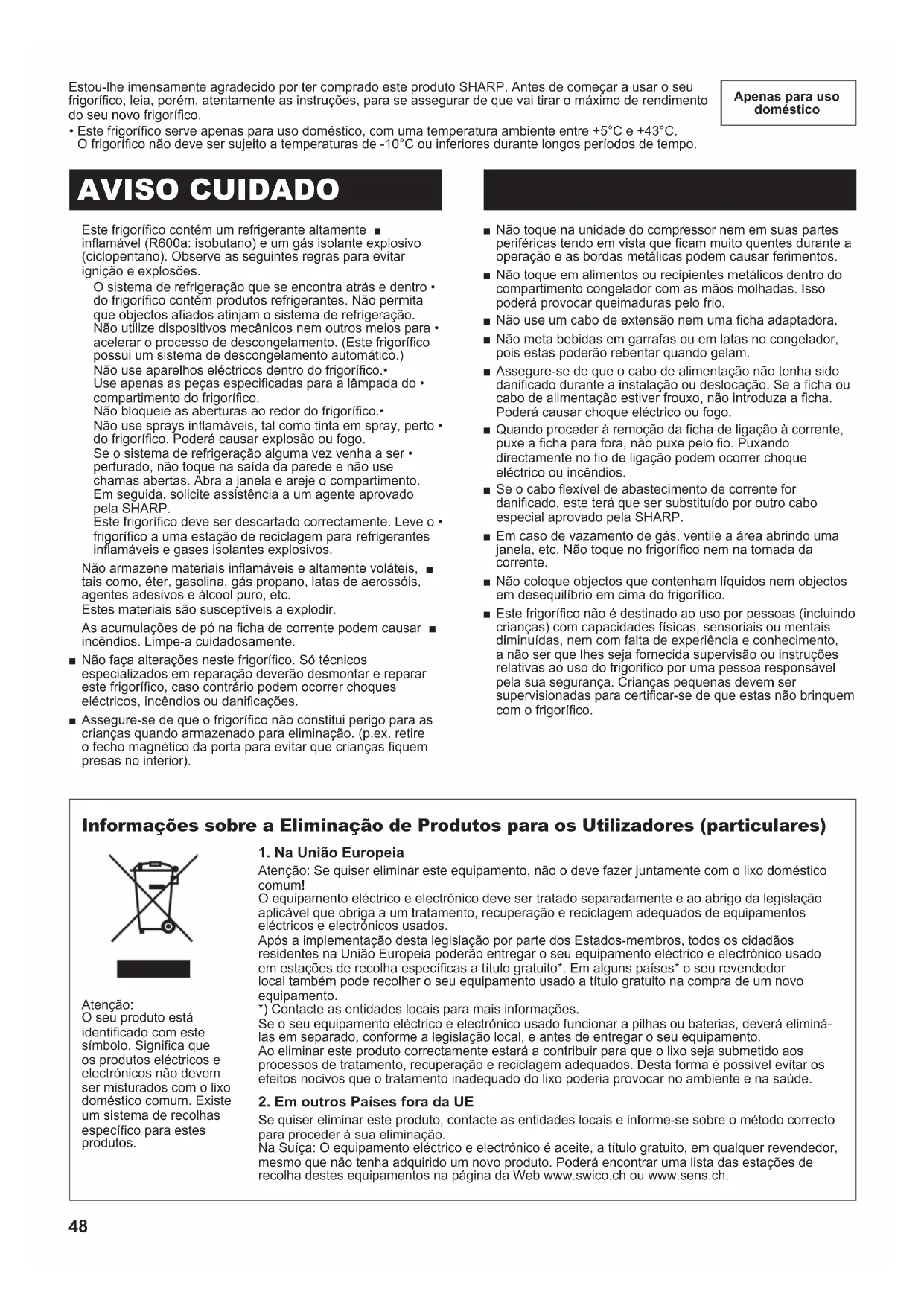 AVISO CUIDADO Este frigoríco contém um refrigerante altamente ■