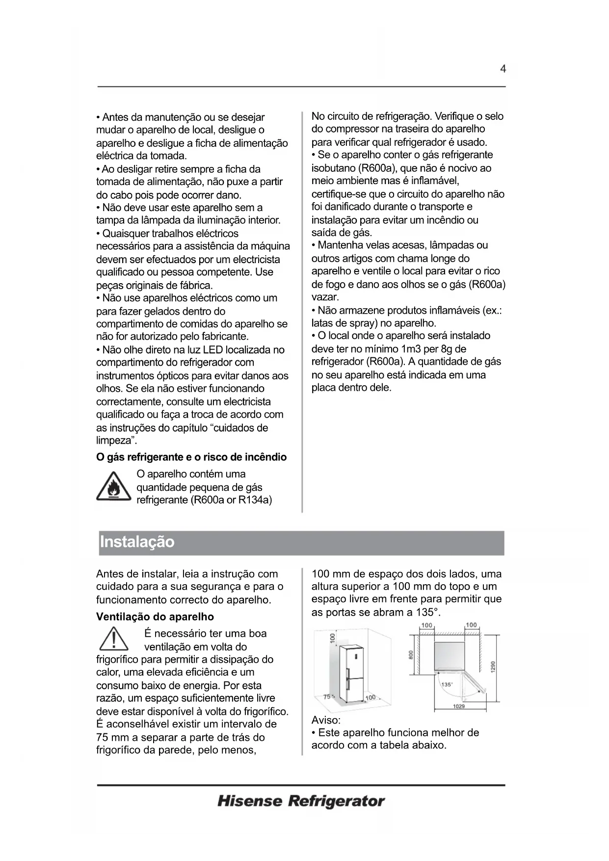 Cuidado! Frigoríficos possuem gás refrigerante. A parte que possui gás deve ser