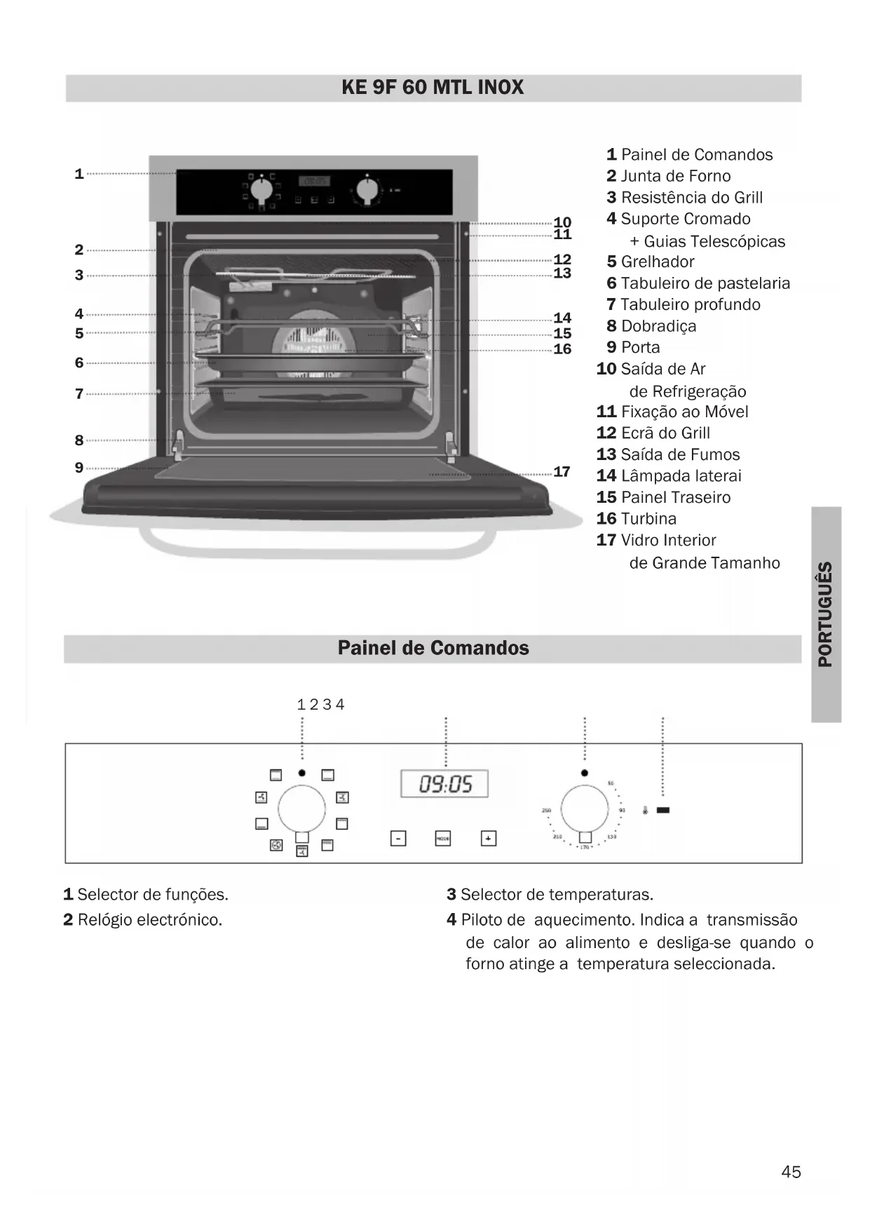 4 Piloto de aquecimento. Indica a transmissão de calor ao alimento e desliga-se quando o forno atinge a temperatura seleccionada.