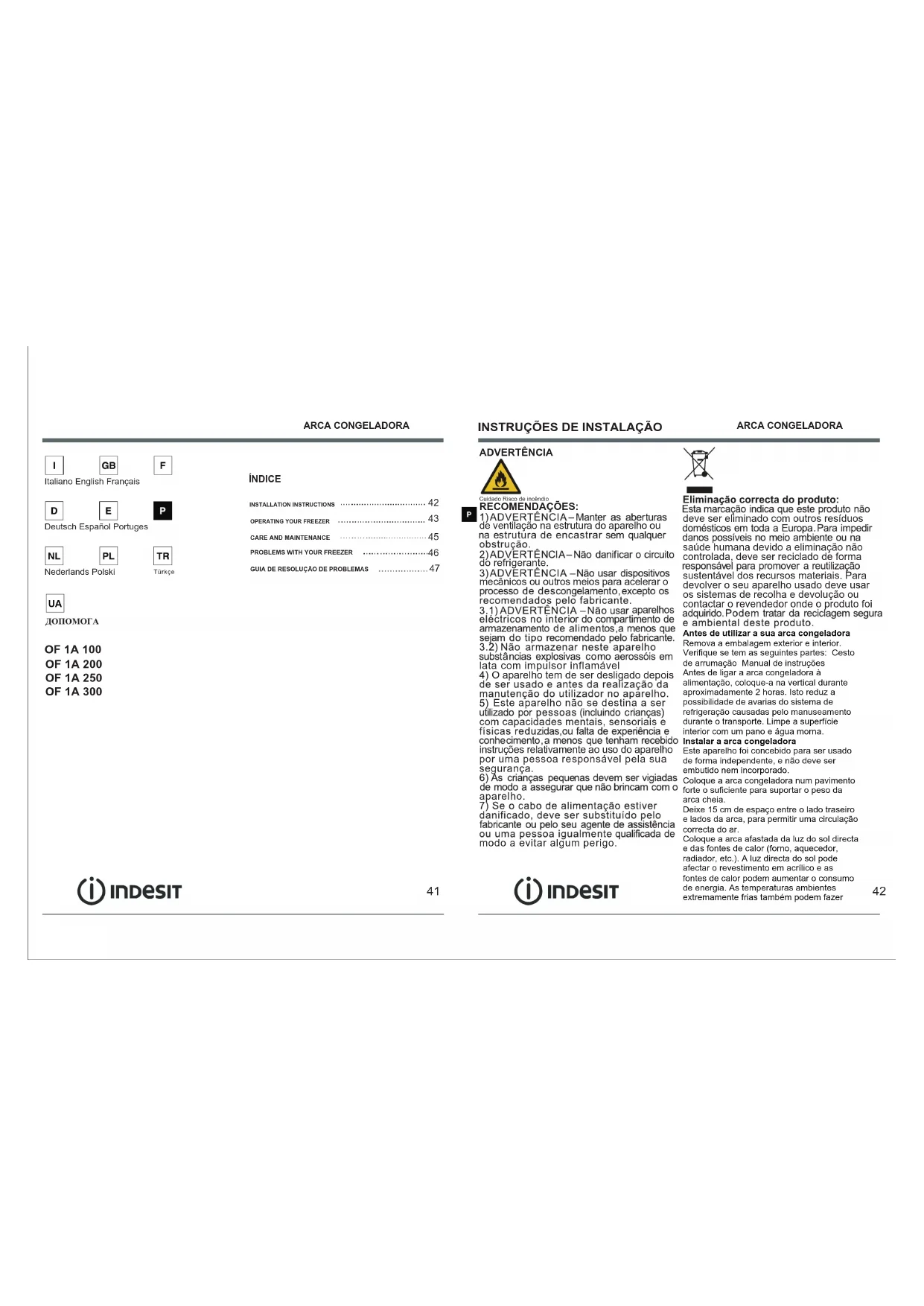 OF 1A 100 - Congelador INDESIT - Manual de utilização gratuito