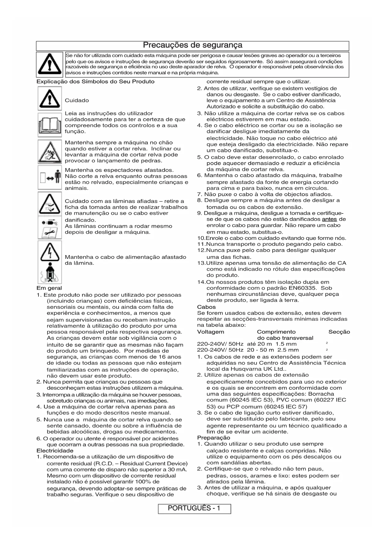 razoáveis de segurança e eficiência no uso deste aparador de relva. O operador é responsável pela observância dos