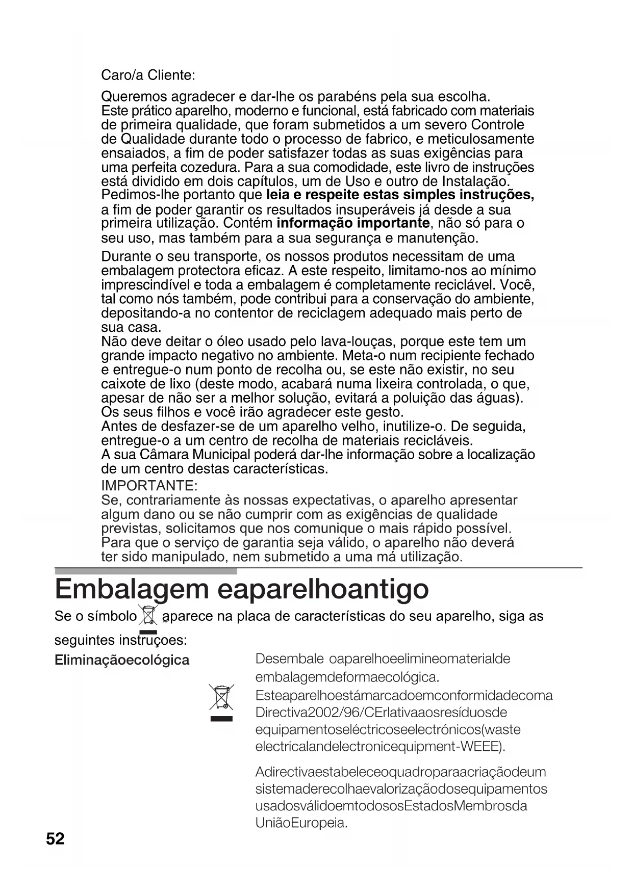 uma perfeita cozedura. Para a sua comodidade, este livro de instruções