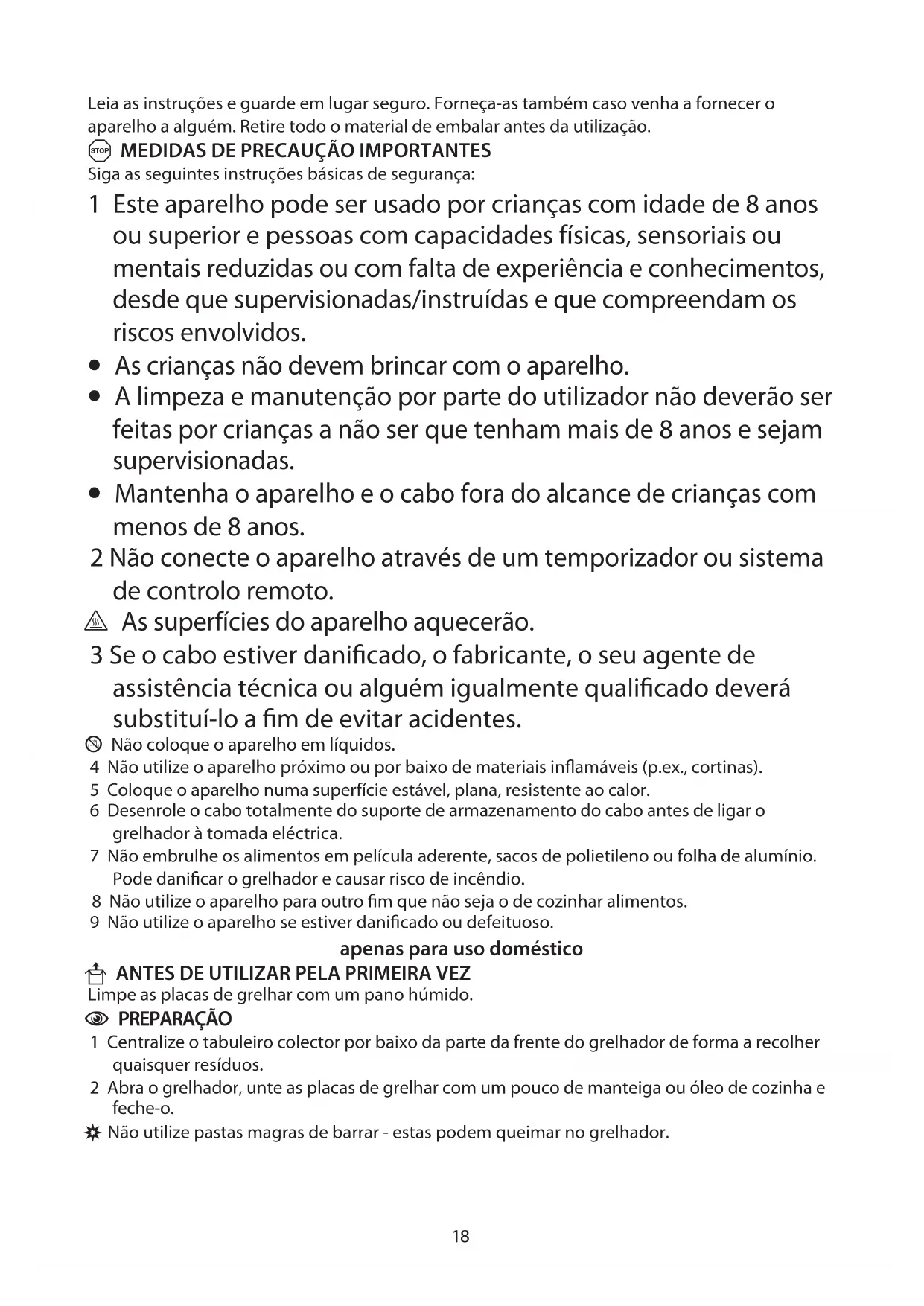 U ANTES DE UTILIZAR PELA PRIMEIRA VEZ Limpe as placas de grelhar com um pano húmido.