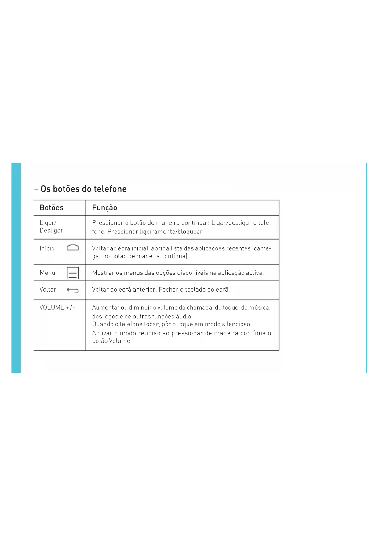 Aumentar ou diminuir o volume da chamada, do toque, da música,