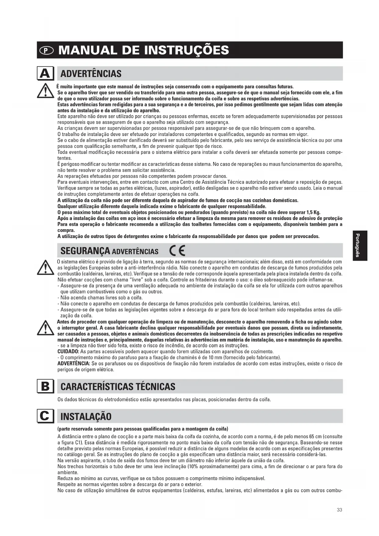 Essas advertências deverão ser conservadas com o manual de instruções da coifa.