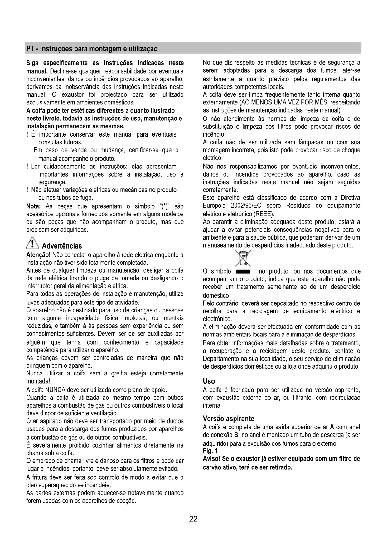 Sigaspecificamenteasinstruçõesindicadasneste manual.Declina-se qualquerresponsabildadepor eventuais inconvenrientes,danos ou incéndiosprovocadosaoaparelho, derivantesdainobservança dasinstruçõesindicadasnesthemanual.Oexaustorfoiprojectado para serutilidoxclusivamente emambiente Domesticos.