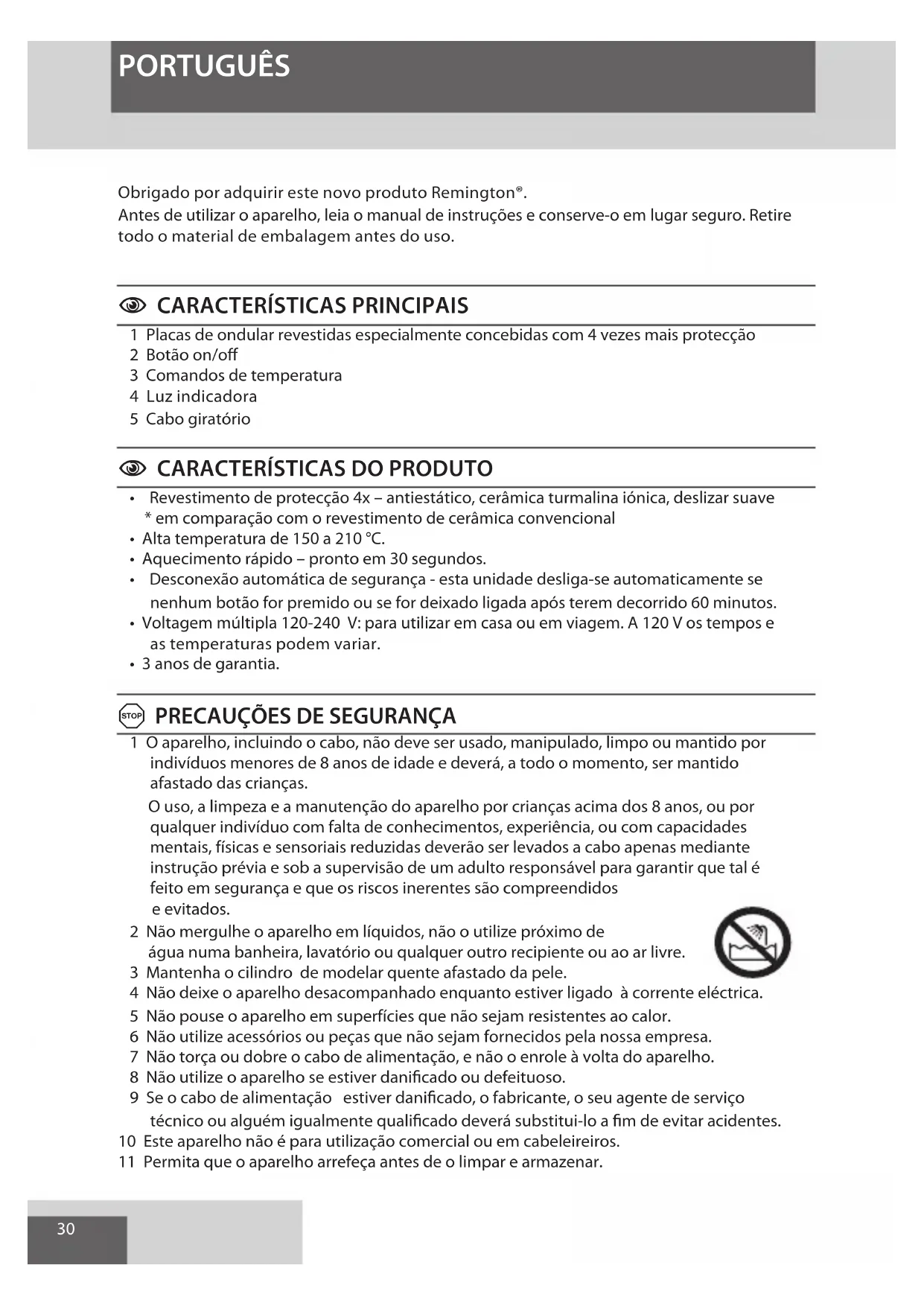 S6280 - Prancha de cabelo REMINGTON - Manual de utilização gratuito