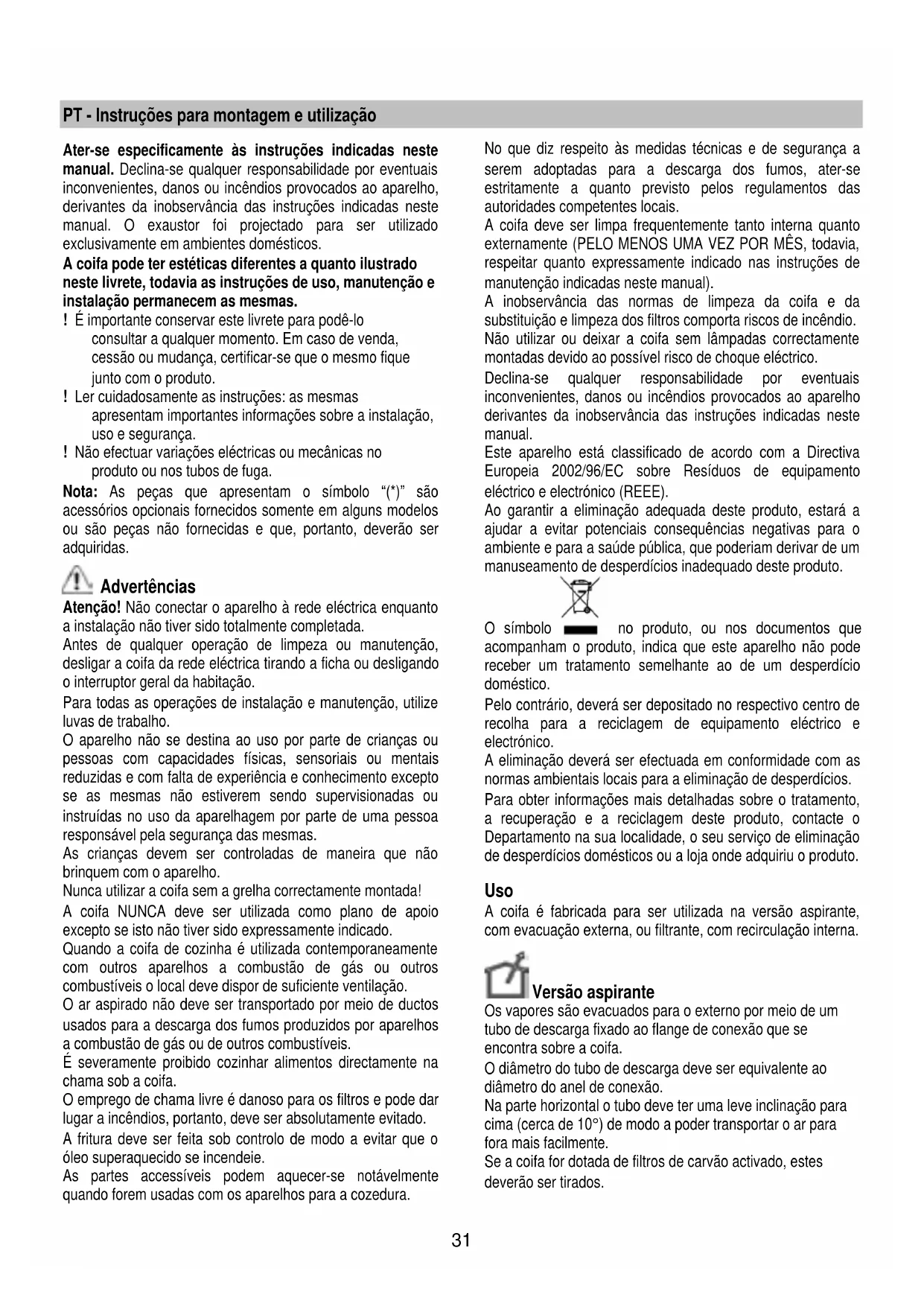 manual. O exaustor foi projectado para ser utilizado