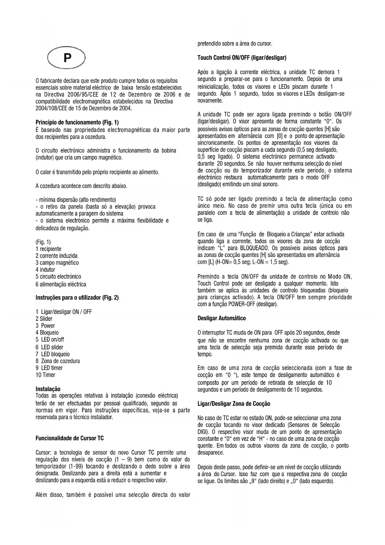 Instruções para o utilizador (Fig. 2)