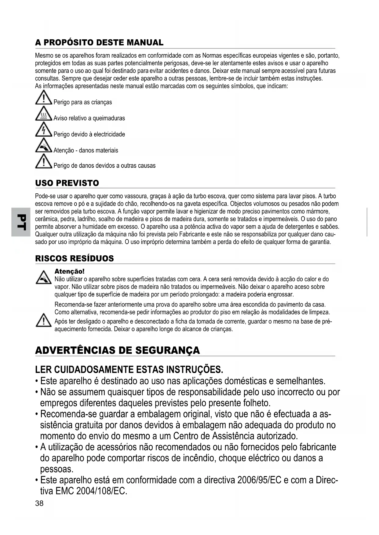 • Este aparelho está em conformidade com a directiva 2006/95/EC e com a Direc-