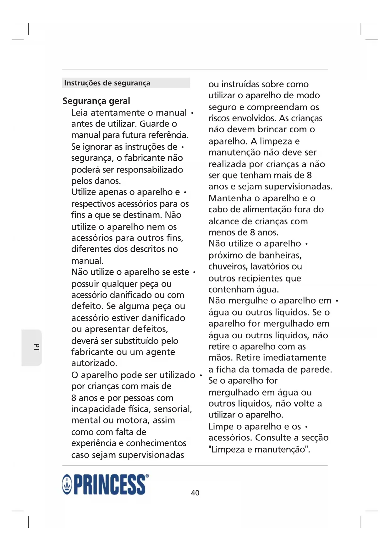 MANUAL DE UTILIZADOR 212040 PRINCESS
