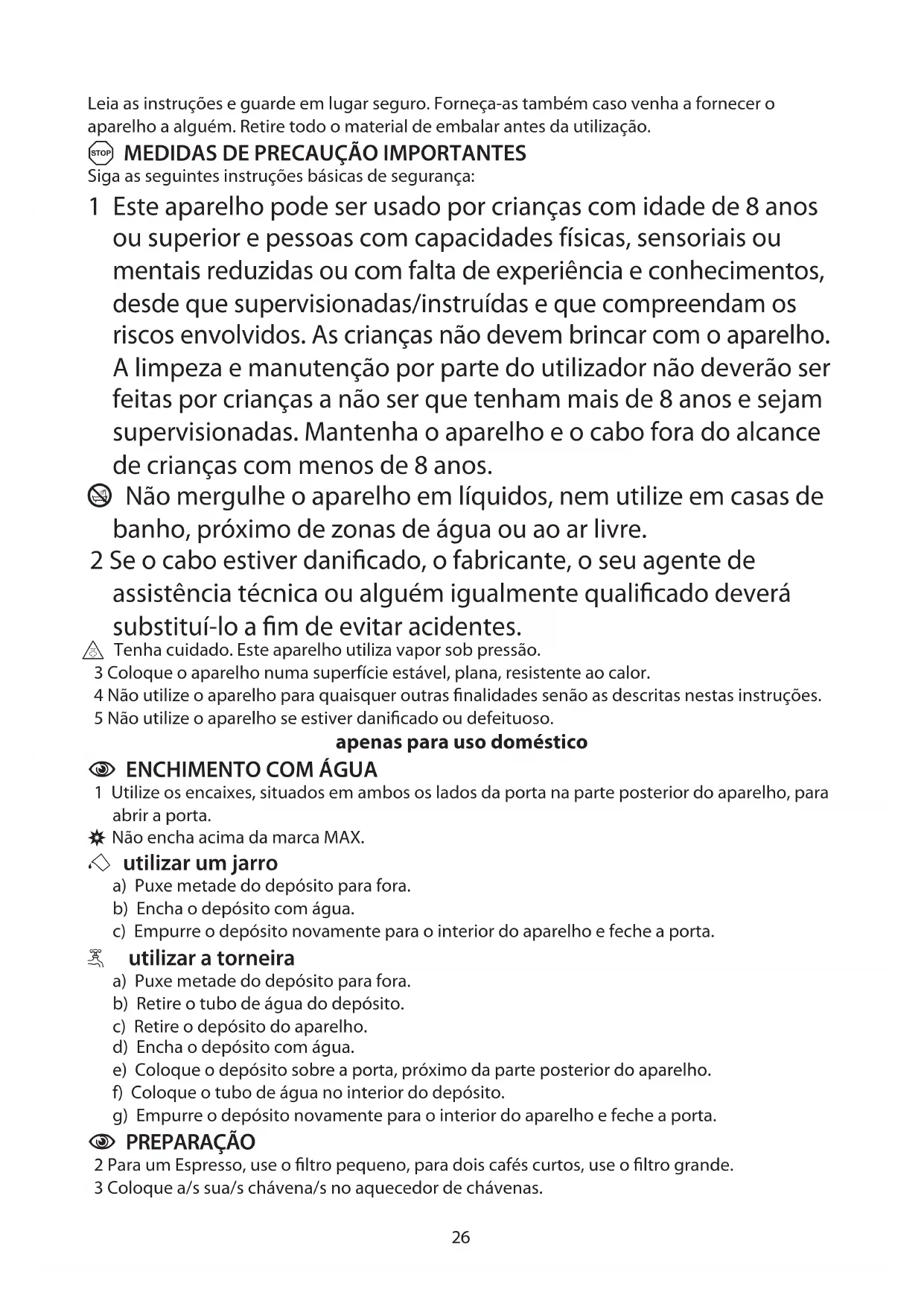 o Tenha cuidado. Este aparelho utiliza vapor sob pressão.
