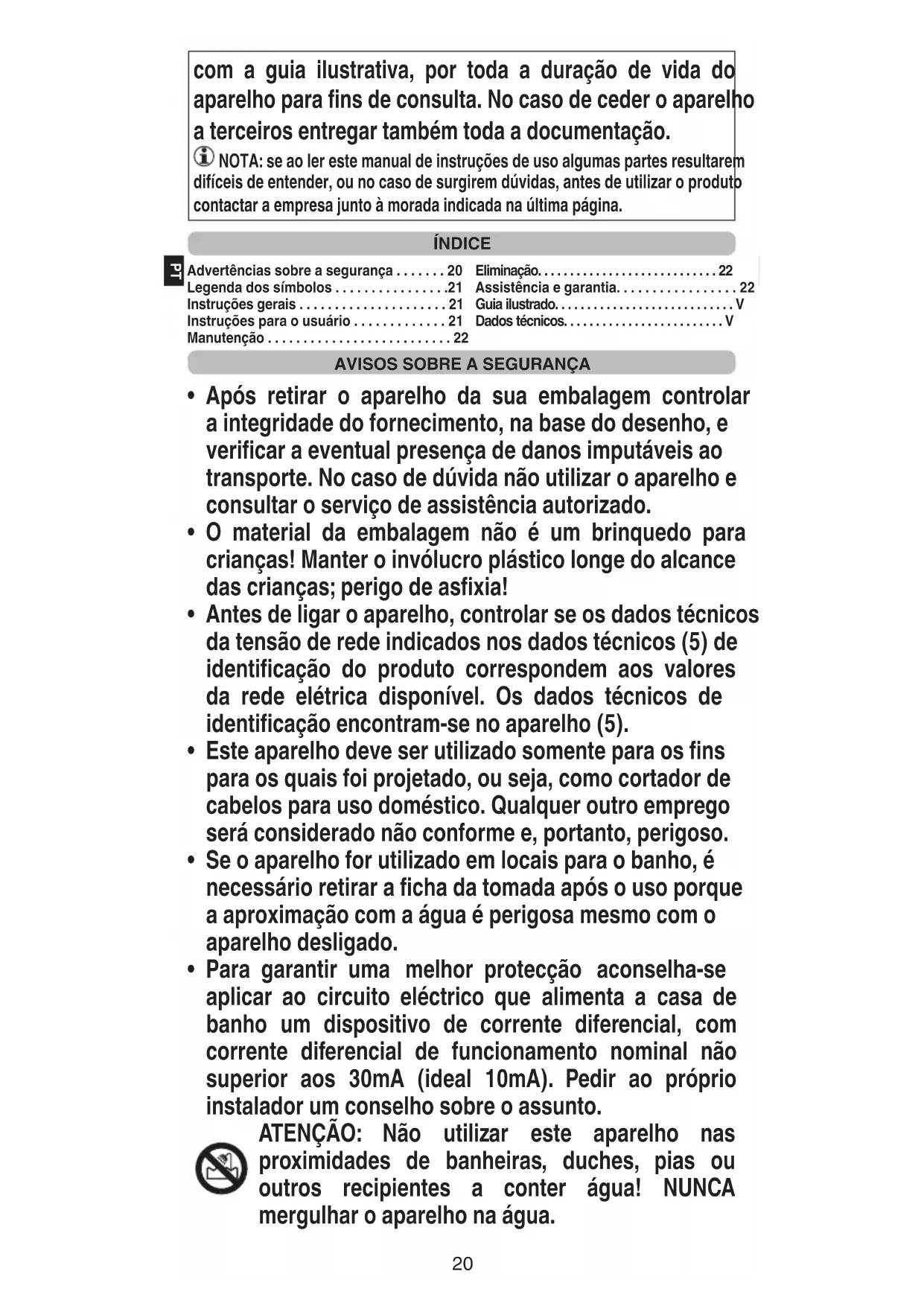 Guia ilustrado. . . . . . . . . . . . . . . . . . . . . . . . . . . . V Dados técnicos. . . . . . . . . . . . . . . . . . . . . . . . . V AVISOS SOBRE A SEGURANÇA