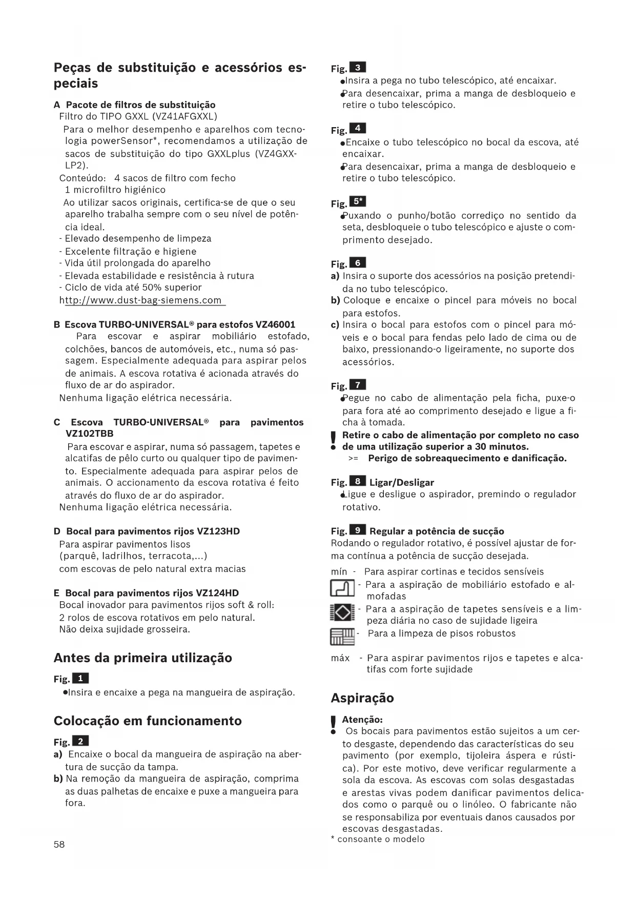 Encontre gratuitamente o manual do aparelho VSQ8SEN66A SIEMENS em formato PDF.