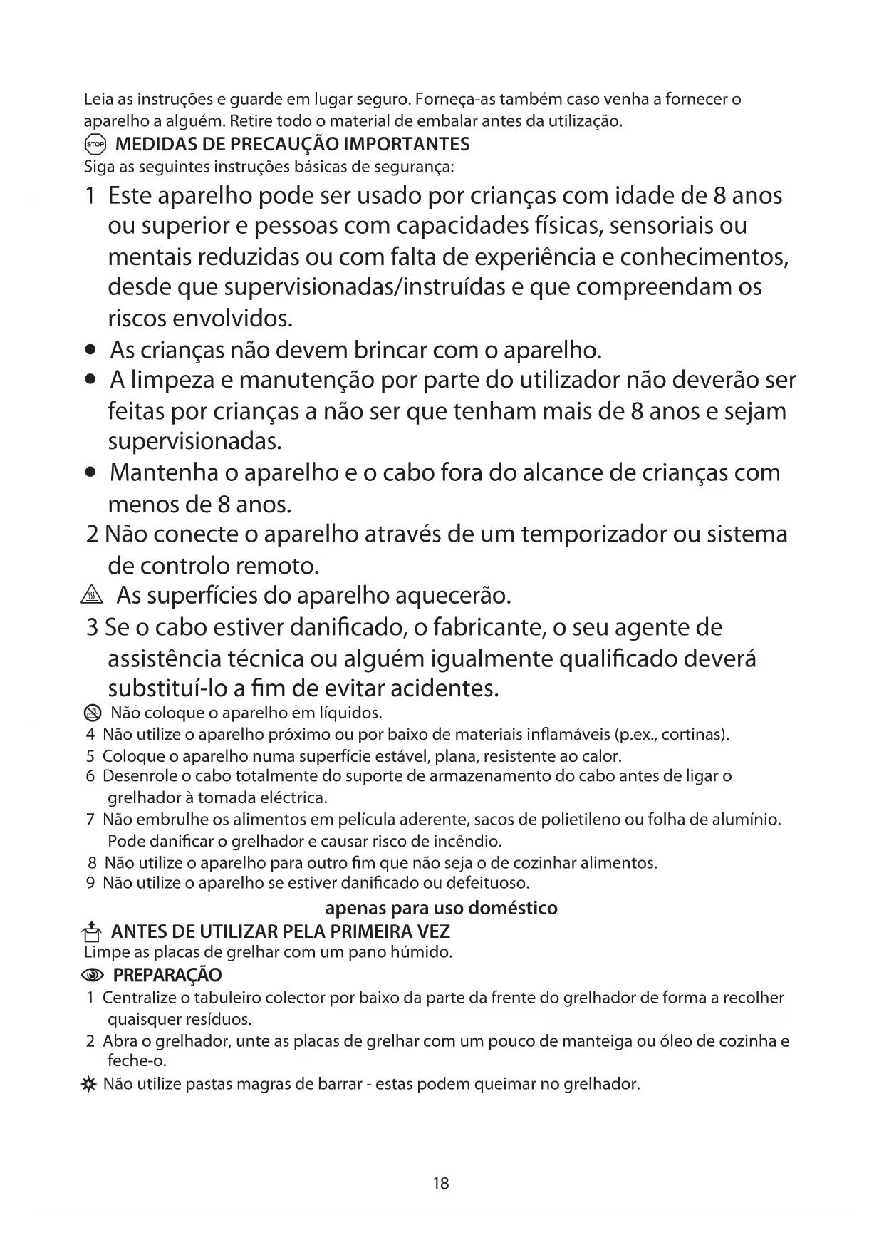 U ANTES DE UTILIZAR PELA PRIMEIRA VEZ Limpe as placas de grelhar com um pano húmido.