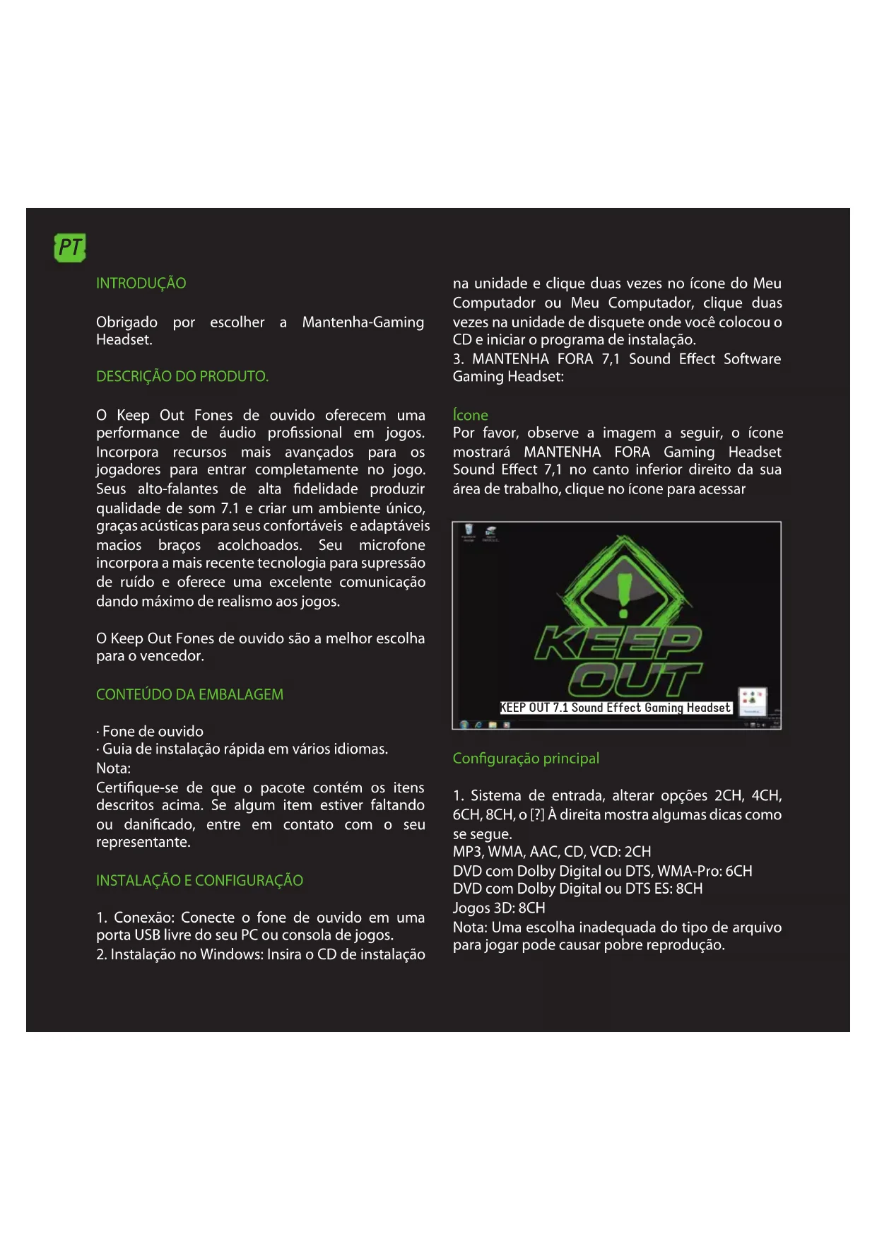 Obrigado por escolher a Mantenha-Gaming Headset.
