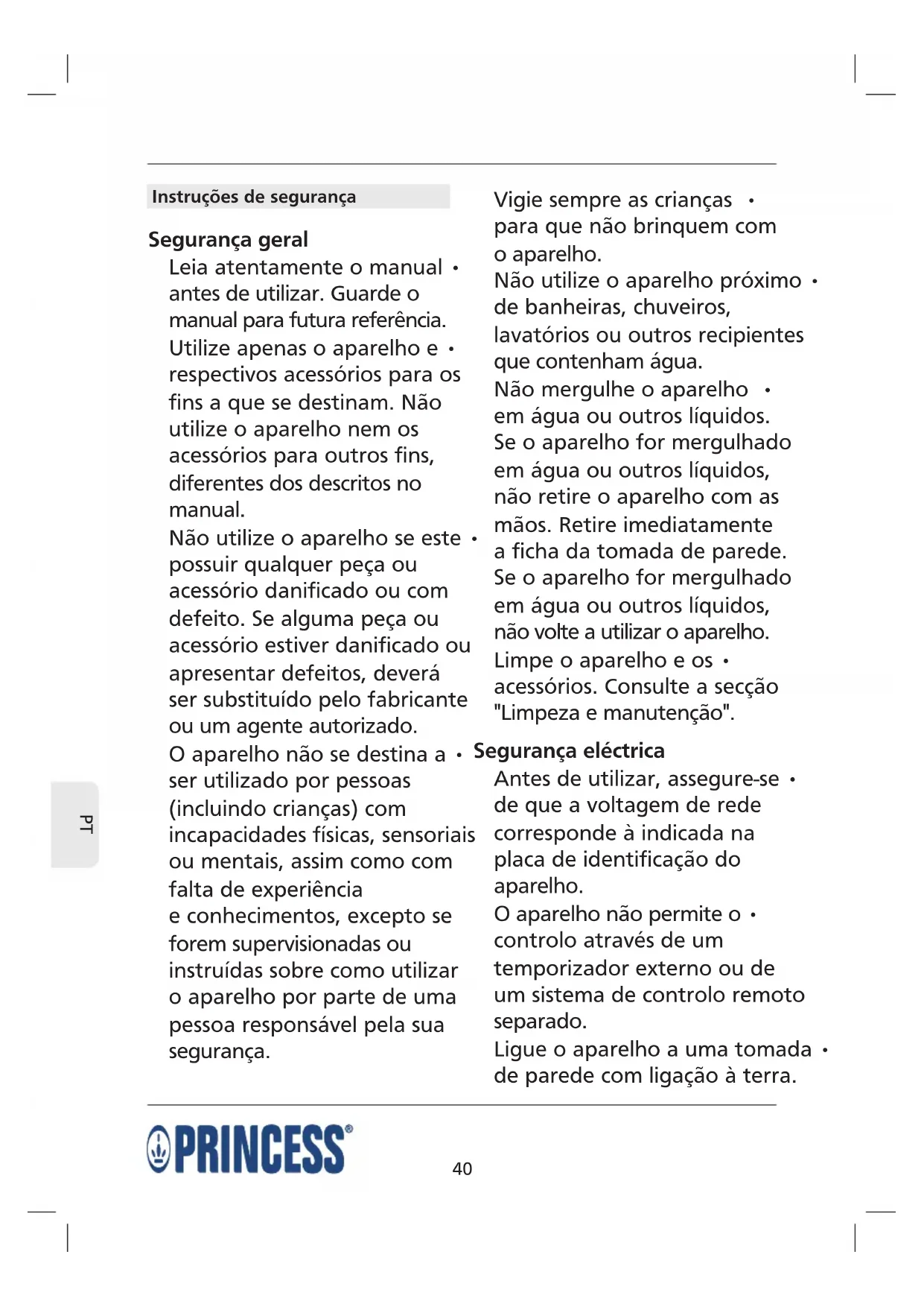 PT Instruções de segurança