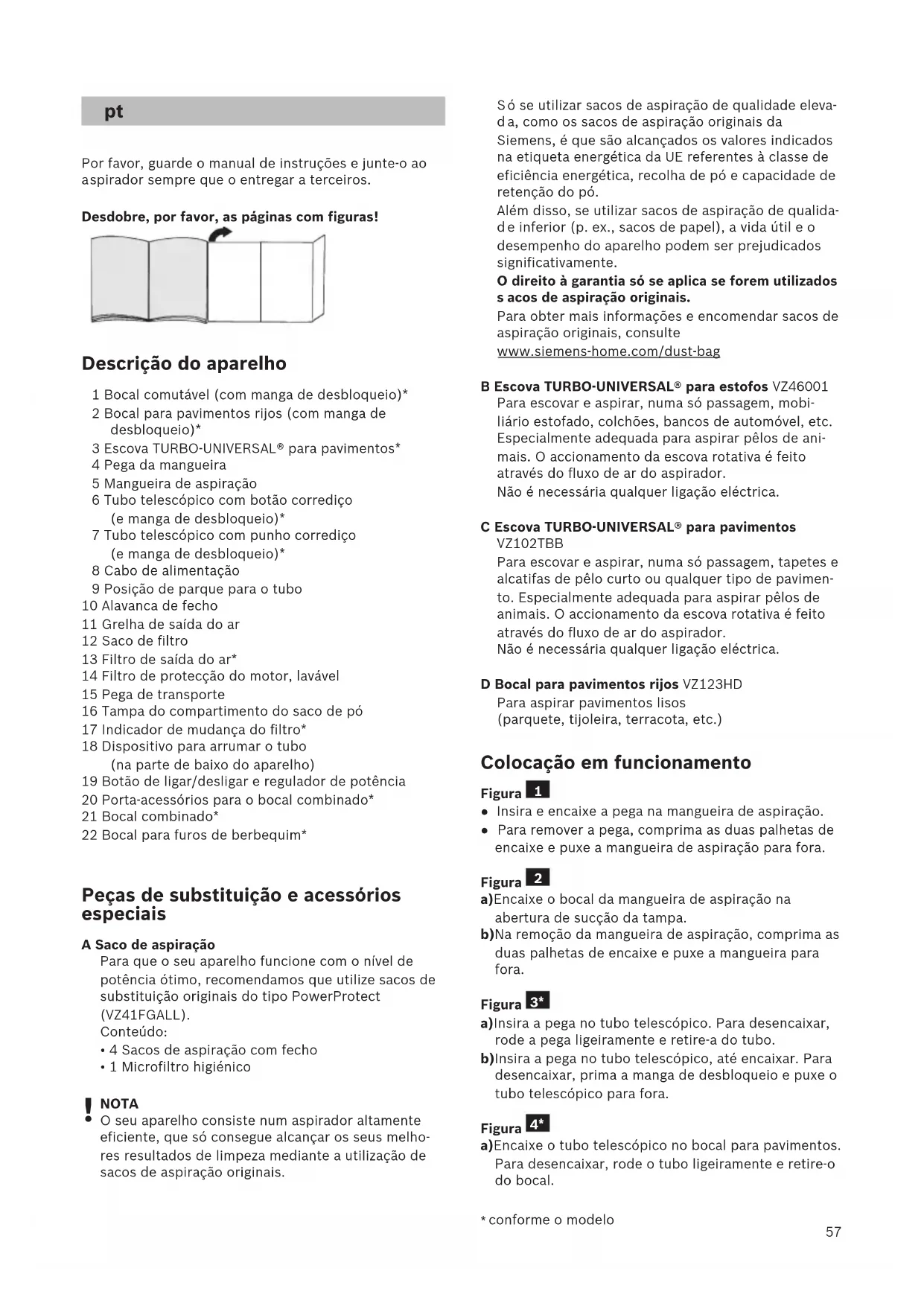 VSZ4G232M1 - Aspirador SIEMENS - Manual de utilização gratuito