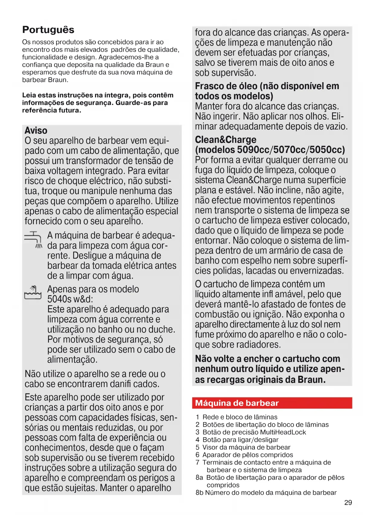Baixe as instruções para o seu Barbeador em formato PDF gratuitamente! Encontre o seu manual Series 55070cc - BRAUN e retome o controlo do seu dispositivo eletrónico. Nesta página estão publicados todos os documentos necessários para a utilização do seu dispositivo. Series 55070cc da marca BRAUN.