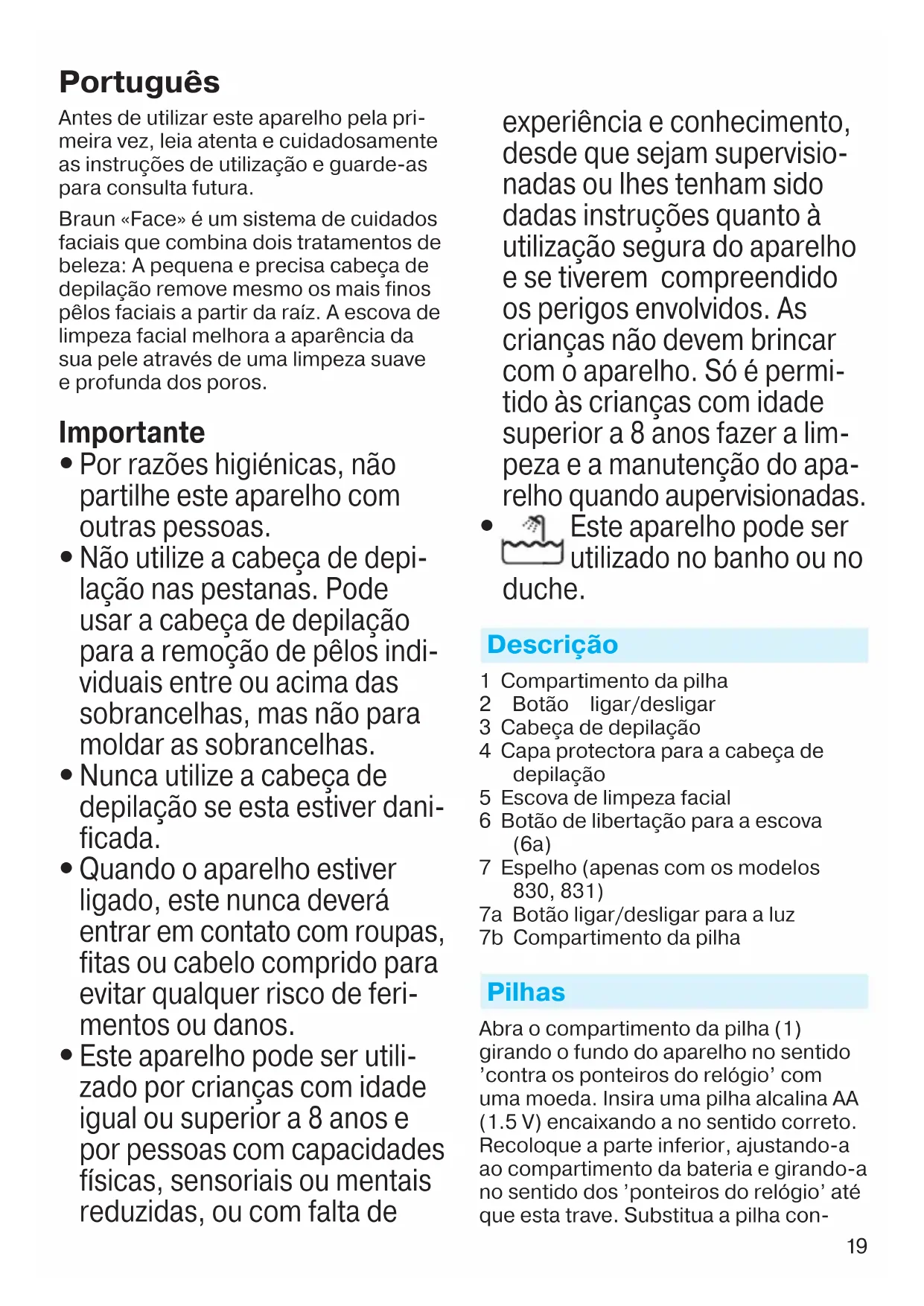 Encontre gratuitamente o manual do aparelho SE820 Face BRAUN em formato PDF.