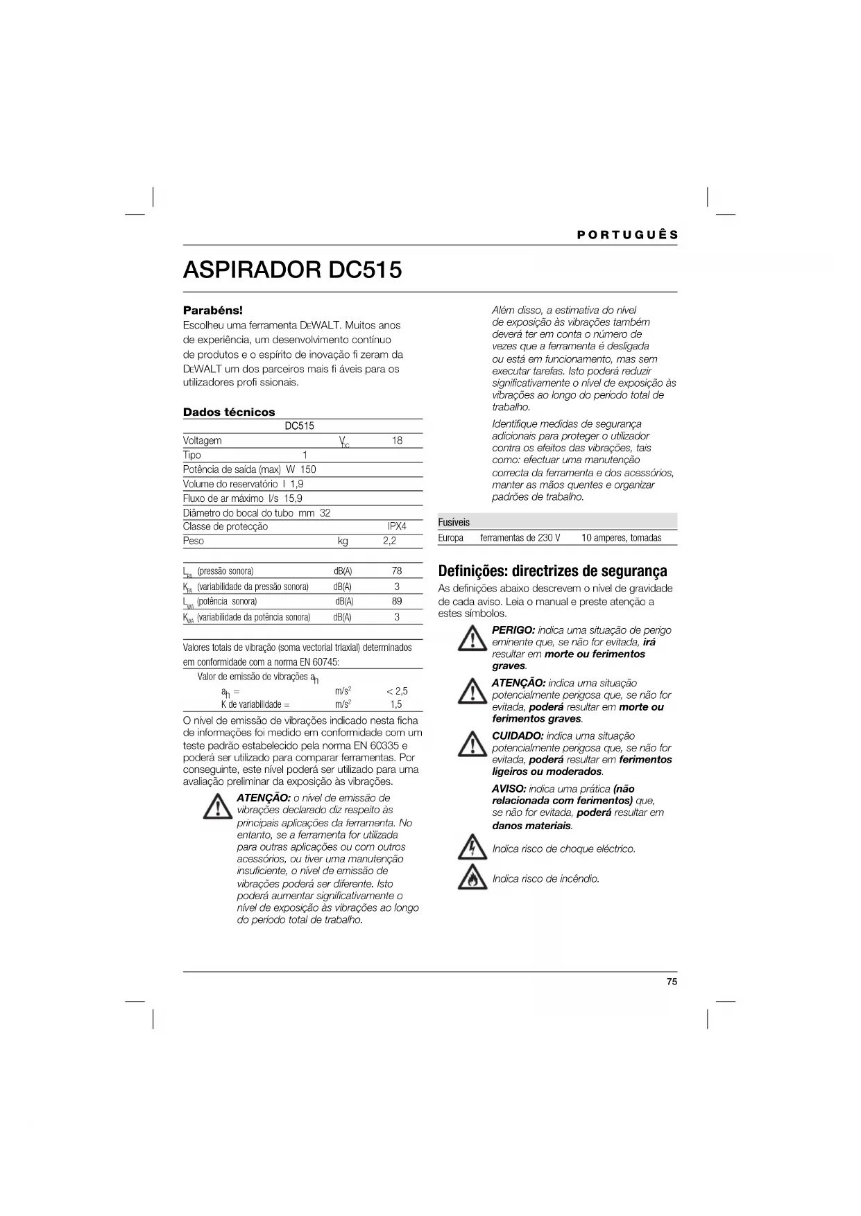 DC515 - Aspirador DEWALT - Manual de utilização gratuito