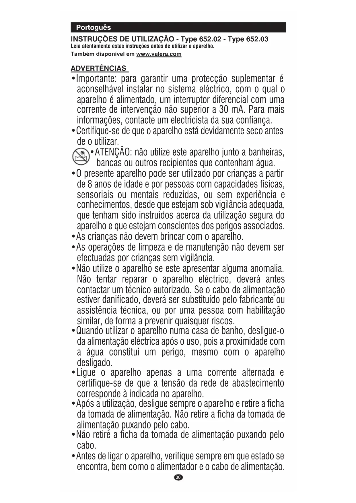 •Não mergulhe o aparelho na água!