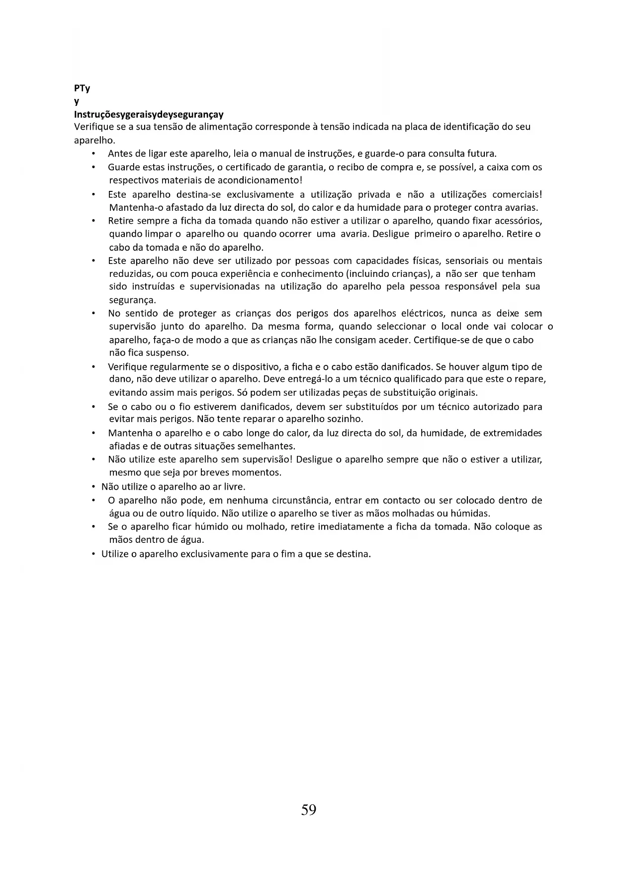 • Utilize o aparelho exclusivamente para o fim a que se destina.60