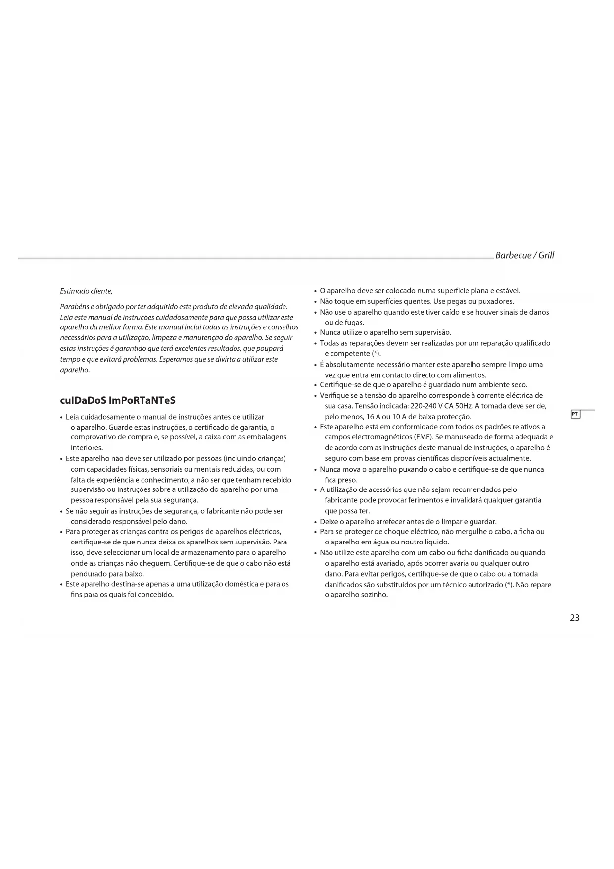 - Não utilize este aparelho com um cabo ou cha danicado ou quando o aparelho está avariado, após ocorrer avaria ou qualquer outro dano. Para evitar perigos, certique-se de que o cabo ou a tomada danicados são substituídos por um técnico autorizado (*). Não repare o aparelho sozinho. Barbecue / Grill1