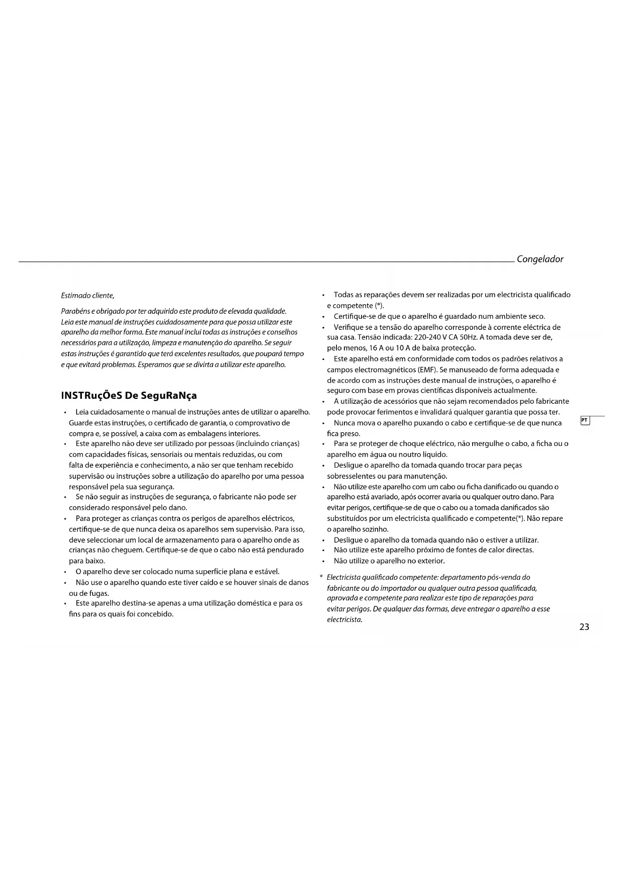 • Todasasreparaçõesdevemserrealizadasporumelectricistaqualicado
