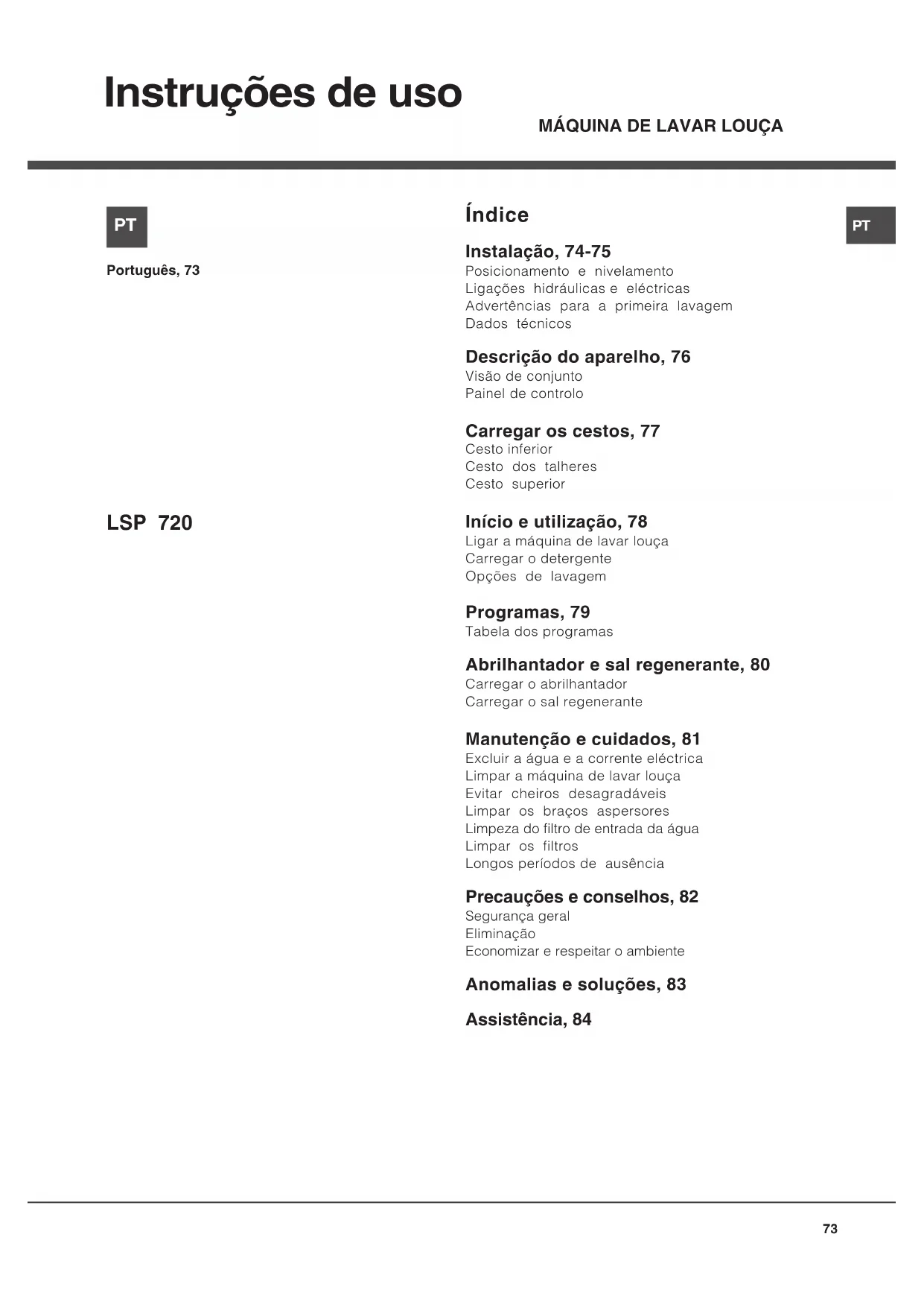 LSP 720A X - Máquinas de lavar loiça HOTPOINT - Manual de utilização gratuito