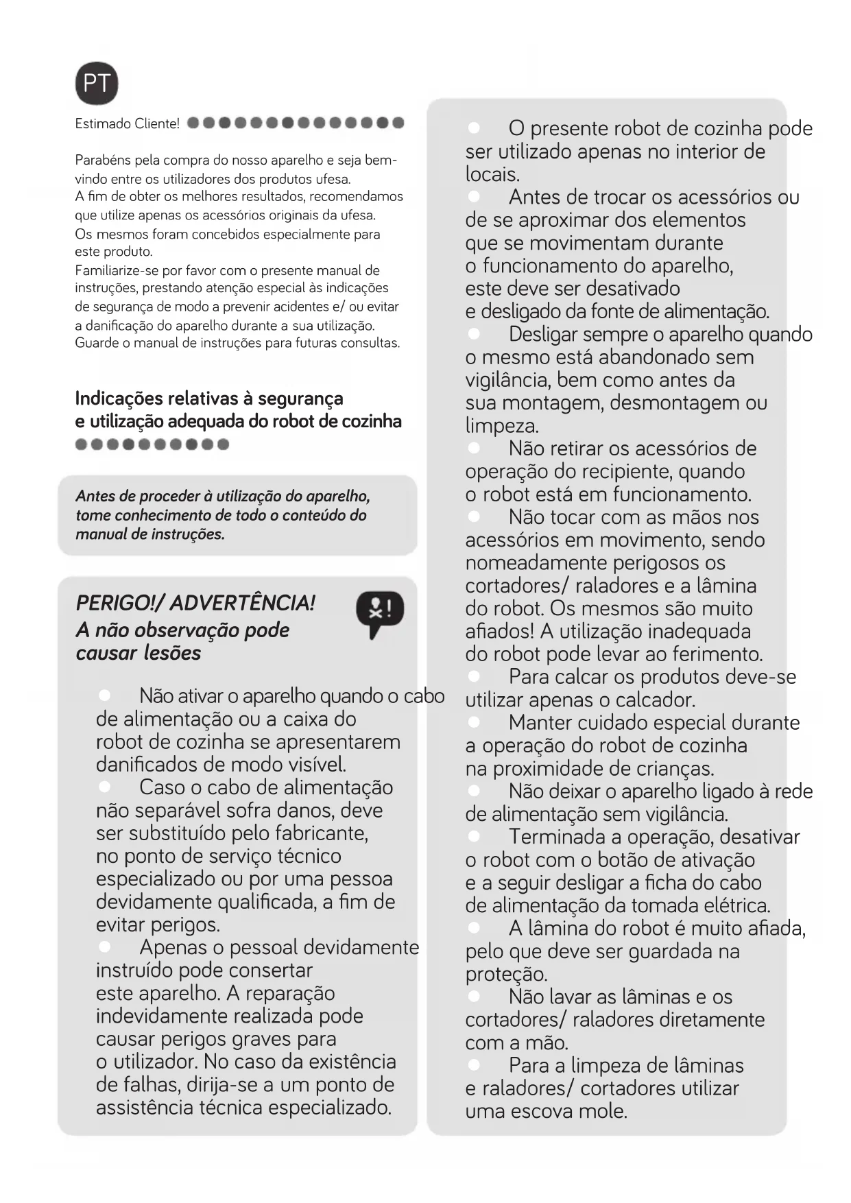 Guarde o manual de instruções para futuras consultas.
